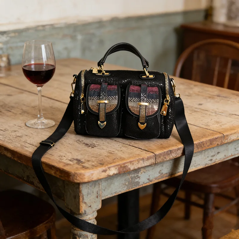 Moda feminina malha rede iridescente paillette strass saco do mensageiro senhora casual brilhante bolsos de escritório bolsa portátil