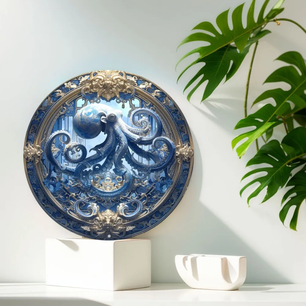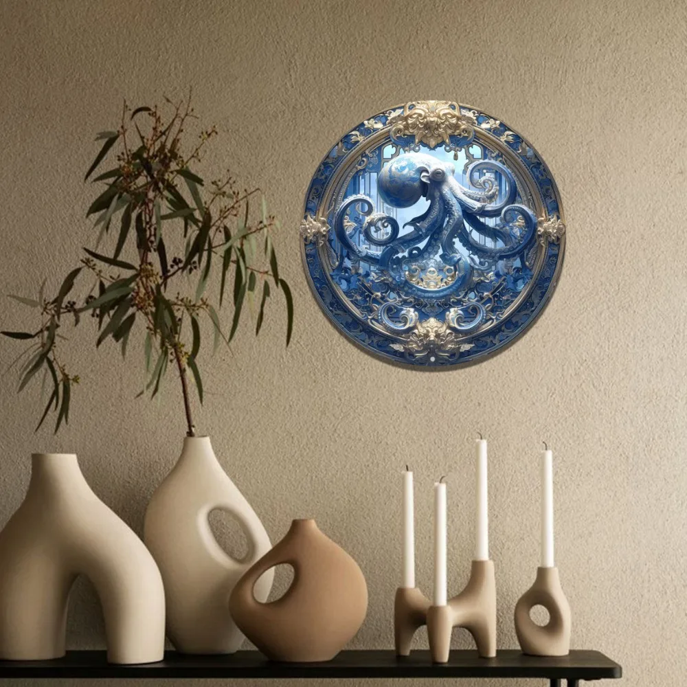 Arte redonda da parede de alumínio, polvo temático, durável, fácil de limpar, decoração de casa e escritório, sinal, perfeito para presentes
