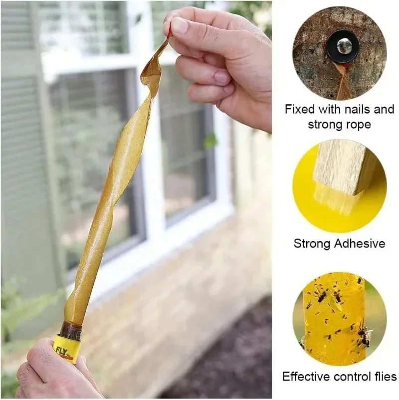 Fita Adesiva para Captura de Insetos 4/40 Rolos, Fita de Cola Forte para Mosquitos, Armadilha Adesiva para Jardim e Casa