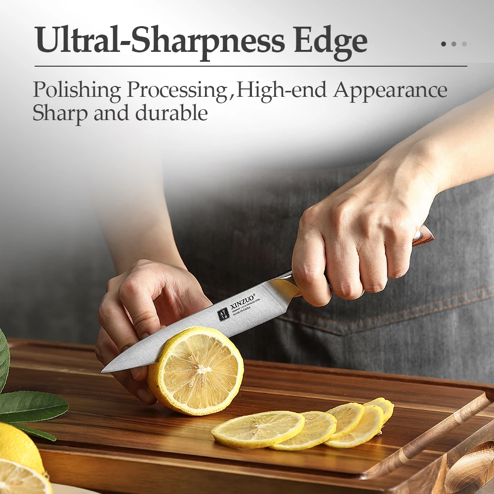 Xinzuo alemanha 1.4116 aço 5 ''multi função utilitário descascando faca de cozinha aço afiado cutelo corte facas multiuso