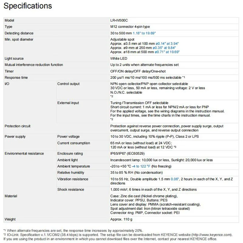 Brandnew genuíno KEYENCE LR-W500C M12 conector ponto de luz branca sensor fotoelétrico