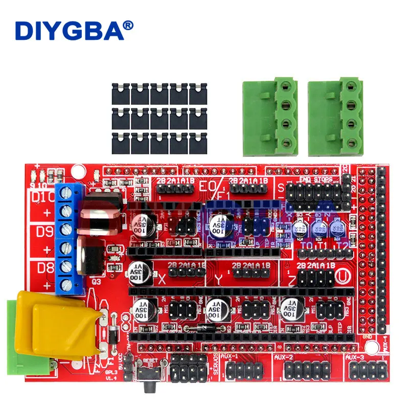 1x Mega 2560 R3 + 1x RAMPS 1.4 + 5x A4988 ou DRV8825 drivers de motor.