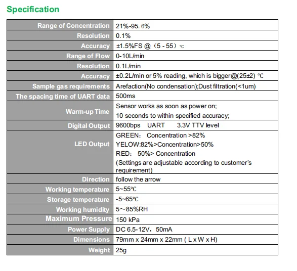 OCS-3FL1.2 Winpower Factory-calibração para concentrador de oxigênio PSA detectar oxigênio 21-95.6% 0-10LPM 2025 sensor de oxigênio ultrassônico