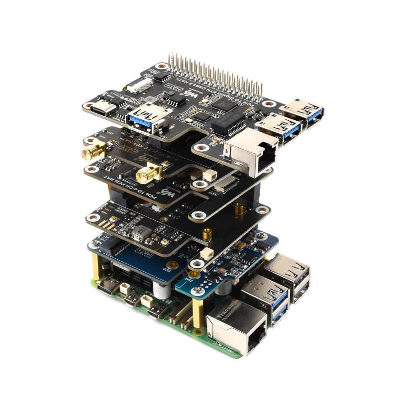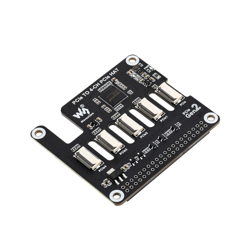 Waveshare PCIe PARA 4-CH PCIe HAT Raspberry Pi 5 PCIe para 4-CH FFC Placa de Expansão PCIe HAT Módulo Pi5 4 Canais