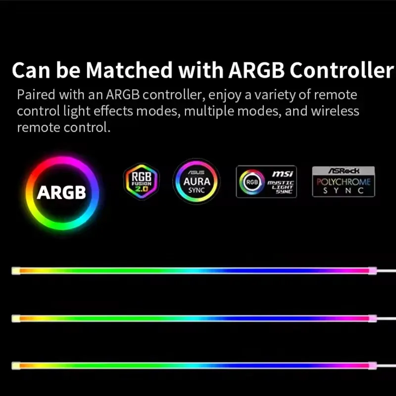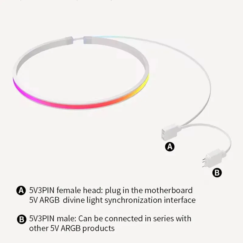 Barra de Luz LED ARGB Flexível de 40cm 5V 3PIN com Adesivo 3M para PC e Gabinete de Computador