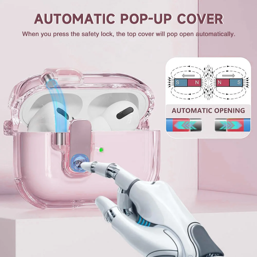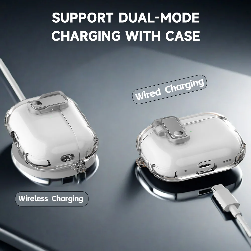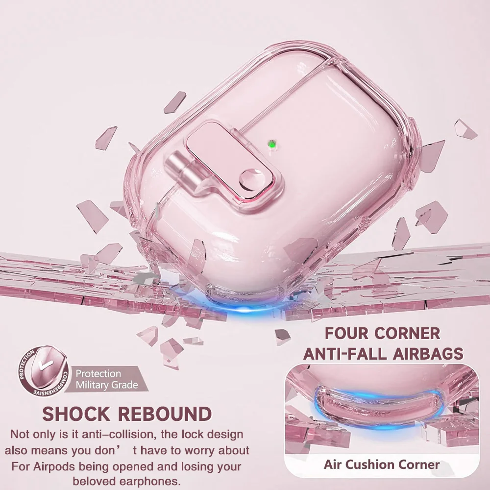Capa de fone de ouvido com trava segura para airpods 4, capa transparente para apple airpods 4a geração airpods pro2 3 2, tpu macio, à prova de choque