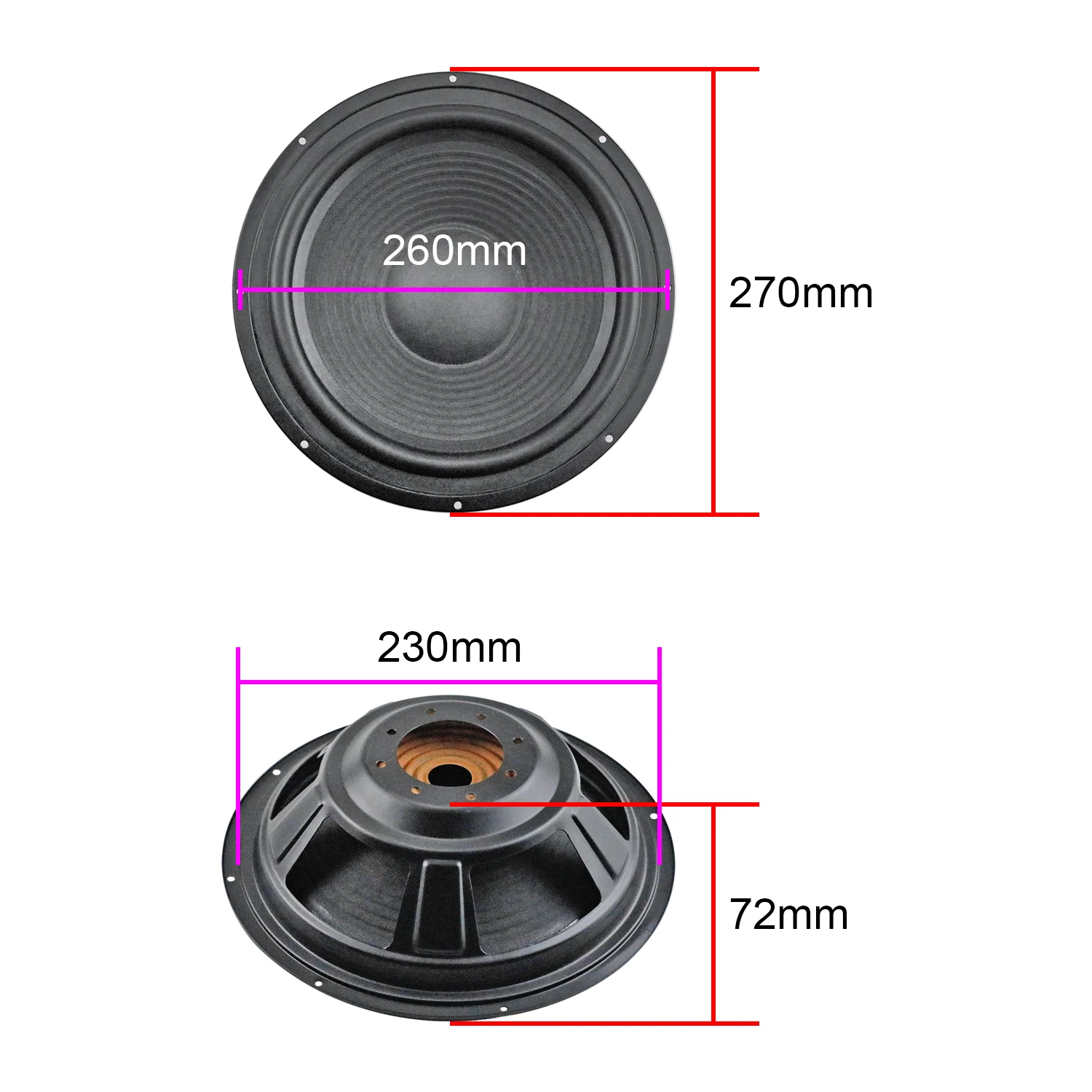 10-inch bass radiator size: 270mm outer diameter