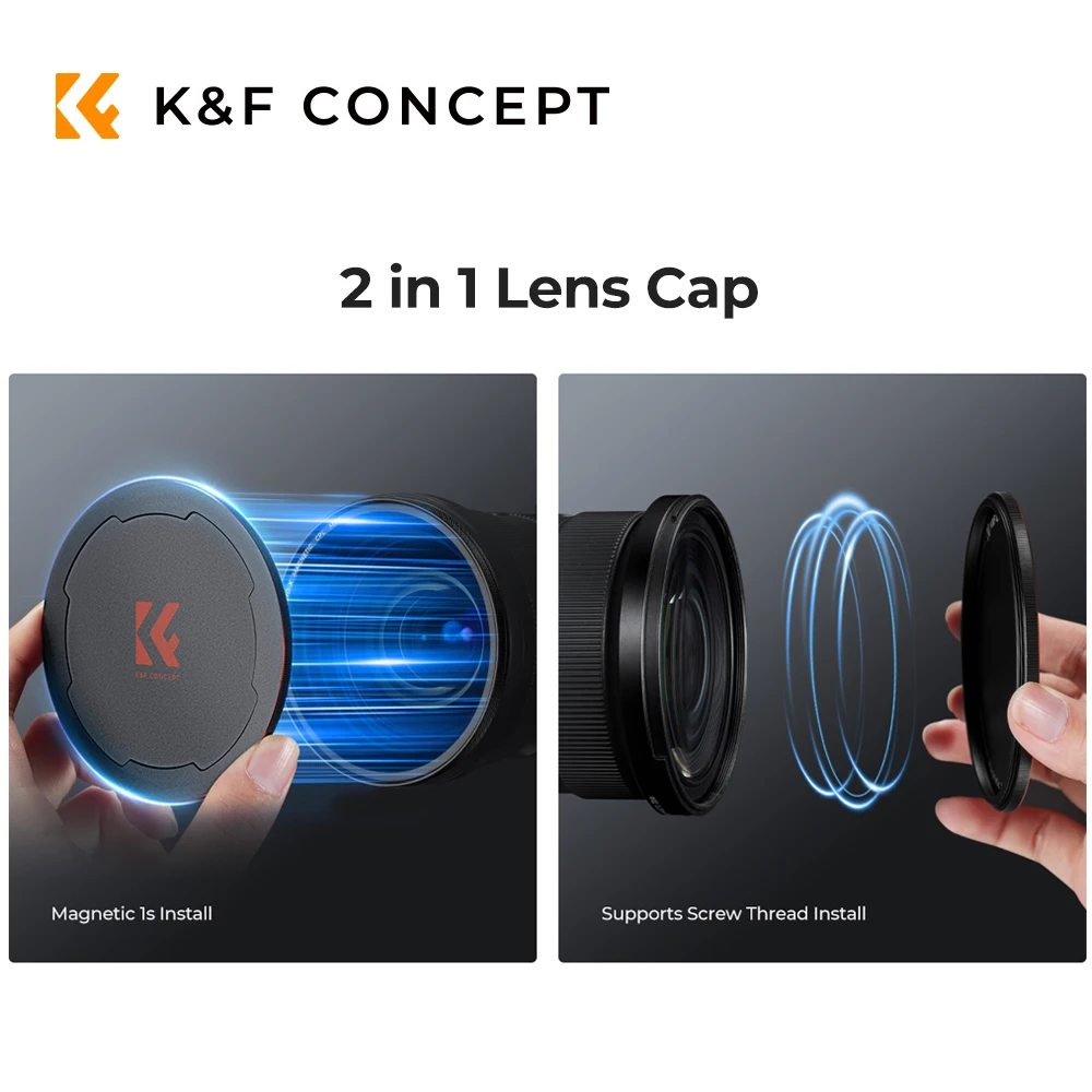 Metal Camera Lens Cap, K & F Conceito filtros magnéticos, apenas adequado para 49mm, 52mm, 55mm, 58mm, 62mm, 67mm, 72mm, 77mm, 82 milímetros