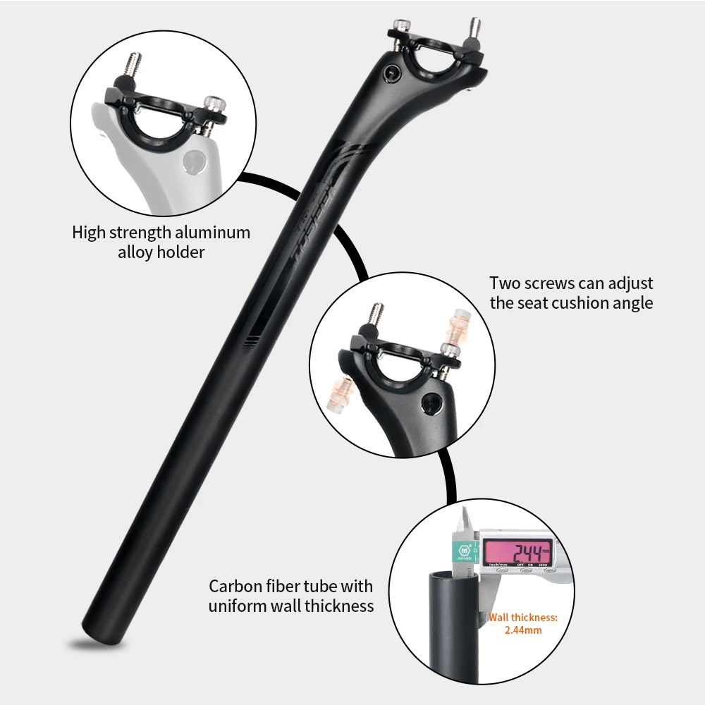 Canote de Carbono TOSEEK 27.2 31.6mm Comprimento 400mm Preto Fosco para Bicicleta MTB e de Estrada