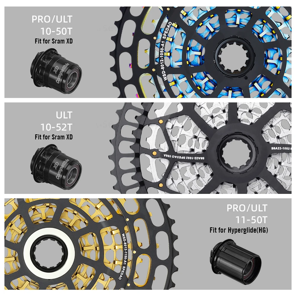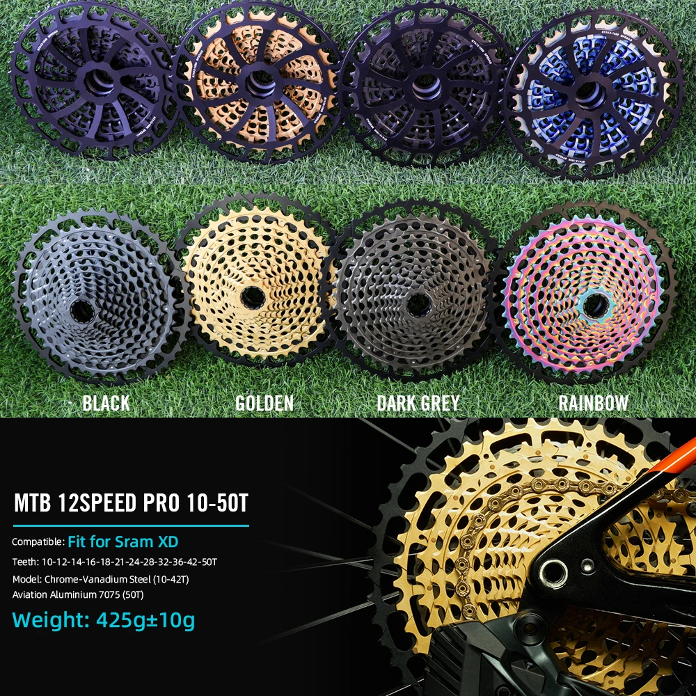 Cassete MTB ULT PRO 12S 10-52T 376g 10-50T 410g 425g 11-50T 380g 395g XD HG em Liga de Aço Arco-Íris CNC Leve