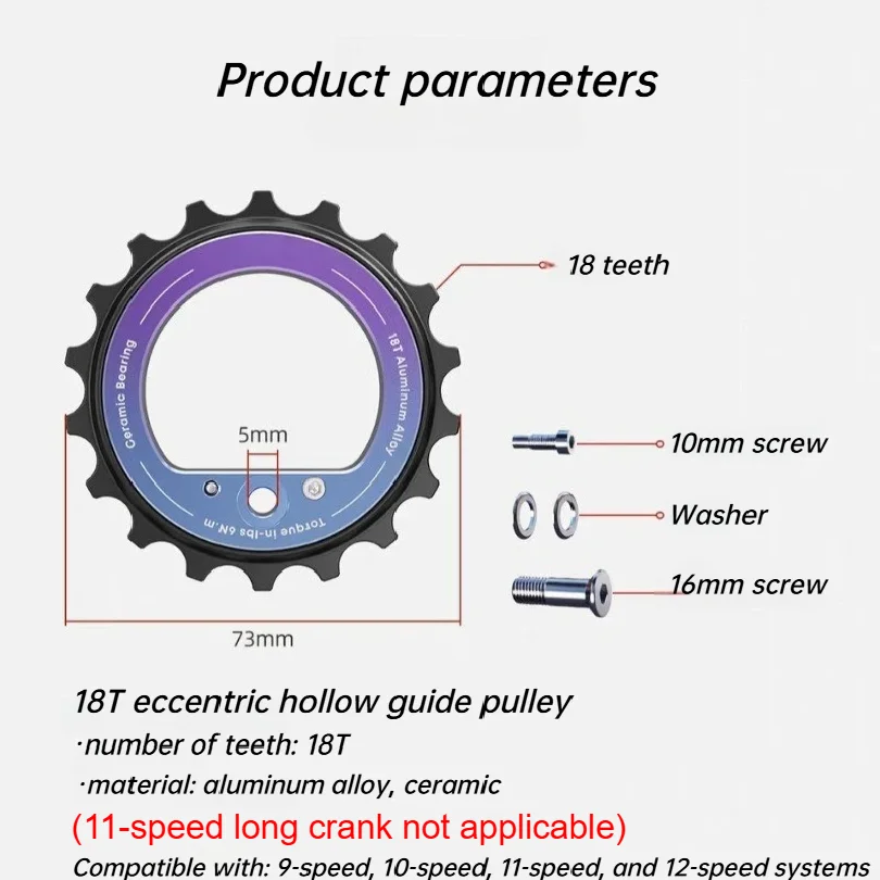 Roldana Excêntrica Oca 18T com Rolamento Cerâmico para Câmbio Traseiro de Bicicleta, Kit de Atualização para Pedivela de Bicicleta de Estrada R8000 R7000 DIY