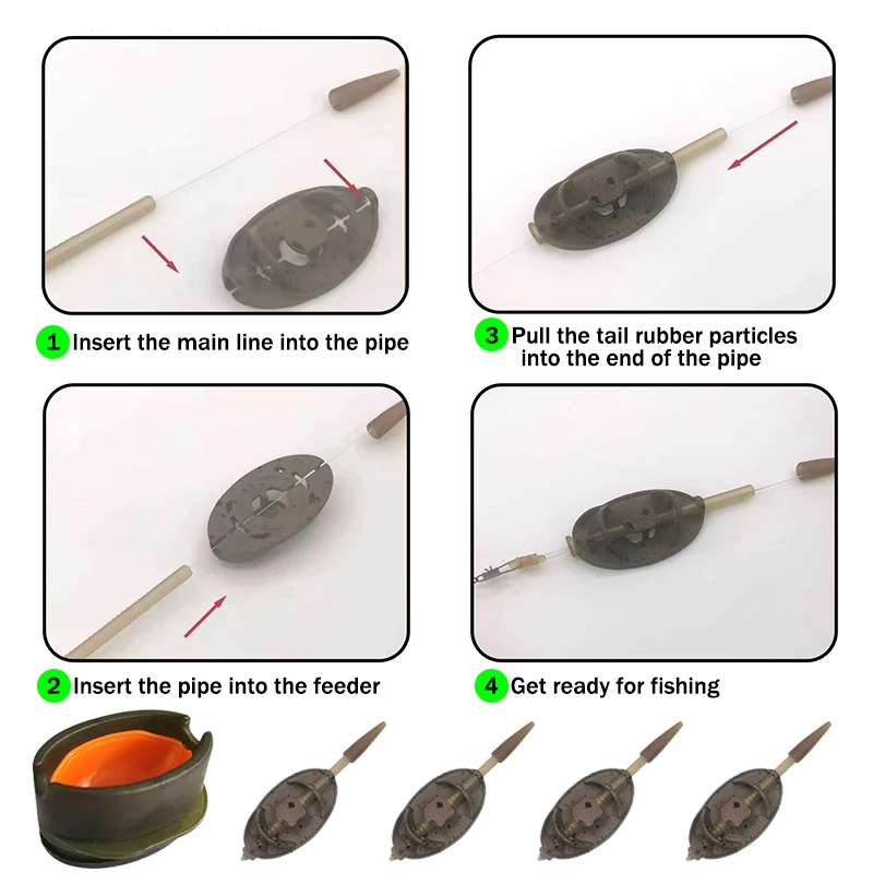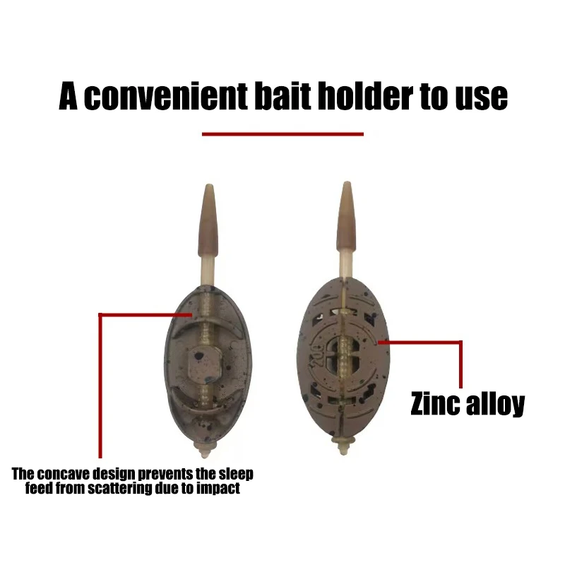 Conjunto de alimentador de carpa de liga de zinco-pesos antiferrugem de liberação rápida para eficiência de pesca em água doce/salgada, 20g/30g/40g/50g, perfeito para