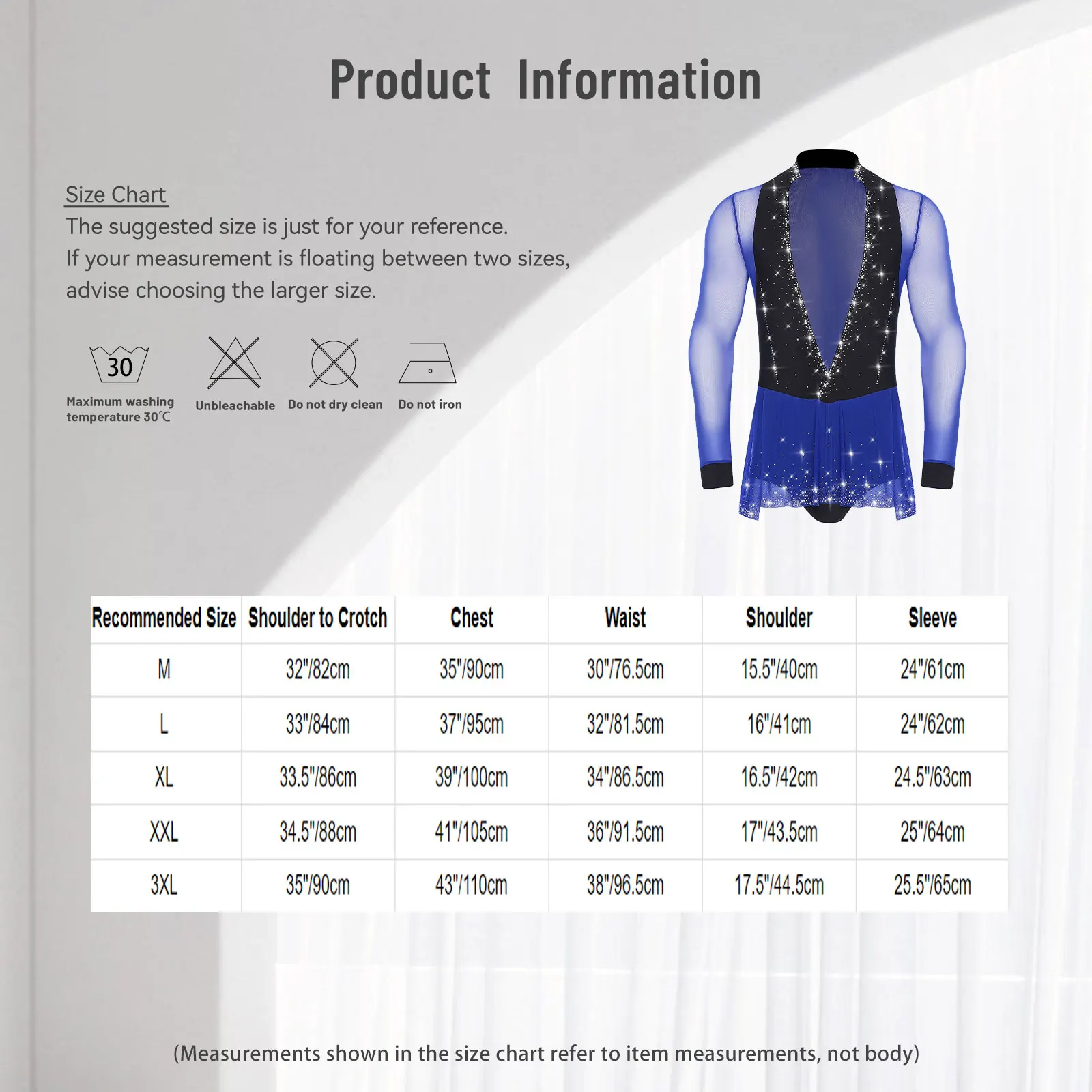 Men Salsa Latin Dance Leotard Deep V-neck Unitards Figure Skating Leotard