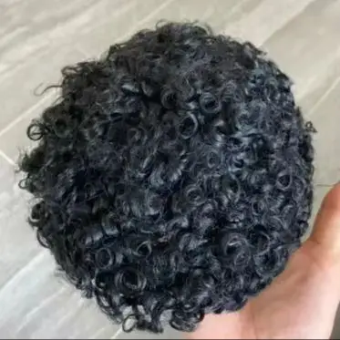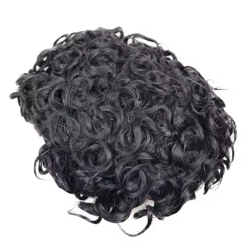 Homens preto cinza 100% cabelo humano peruca 18mm encaracolado estilo afro injeção durável completa base de pele do plutônio masculino prótese cabelo para homem peruca