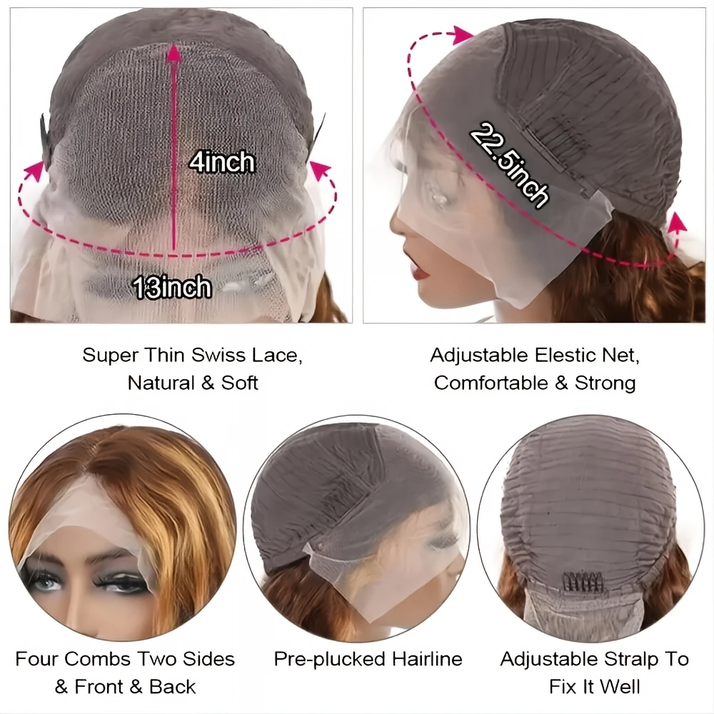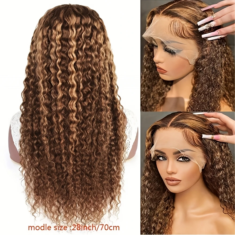 Peruca Frontal de Renda Ombre de 30 Polegadas com Destaques, Cabelo Humano Brasileiro Loiro Mel, HD 13x4, Ondas Profundas 4/27, Perucas Frontais de Renda 13x6, Peruca 4x4