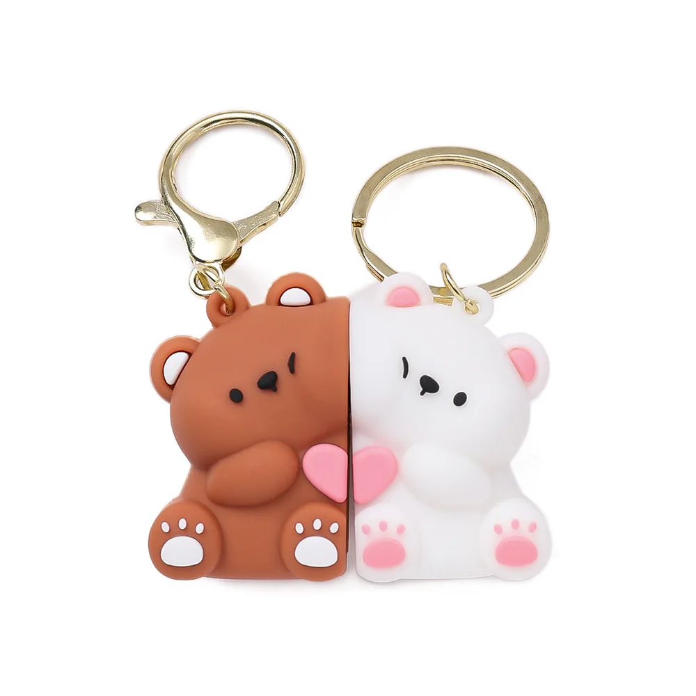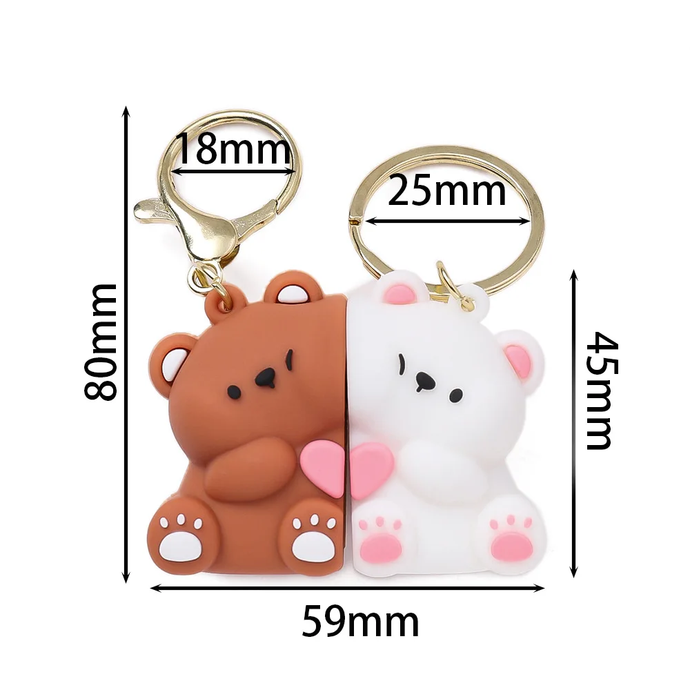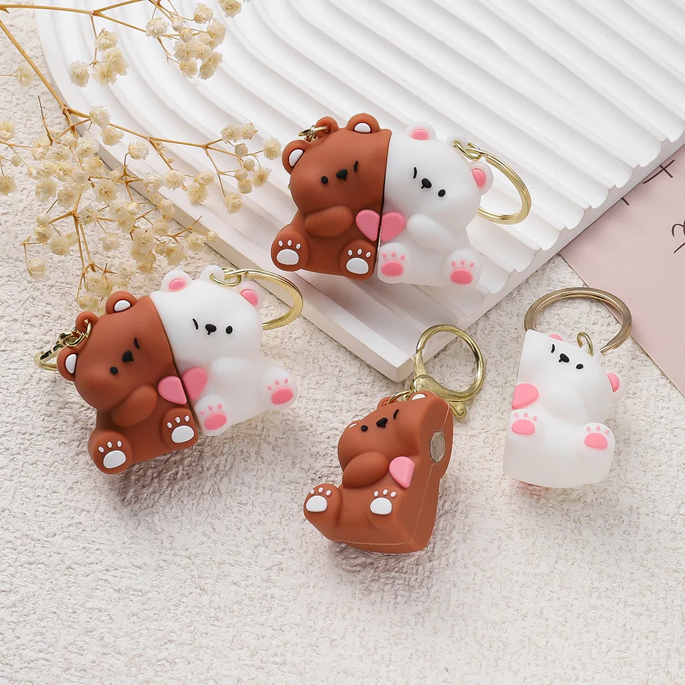 1 Par de Chaveiros Magnéticos de Casal de Ursos de Resina Fofos, Pingente de Bolsa de Bonecos de Animais de Desenho Animado, Chaveiros Kawaii, Presentes para Amantes, Enfeites