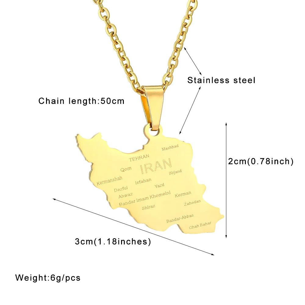 1 Peça Novo Colar de Aço Inoxidável com Pingente de Mapa do Irã em Coração Vazado, Acessório Versátil para Suéter Masculino e Feminino