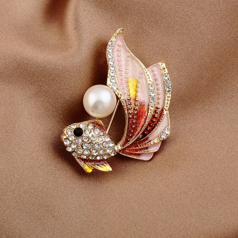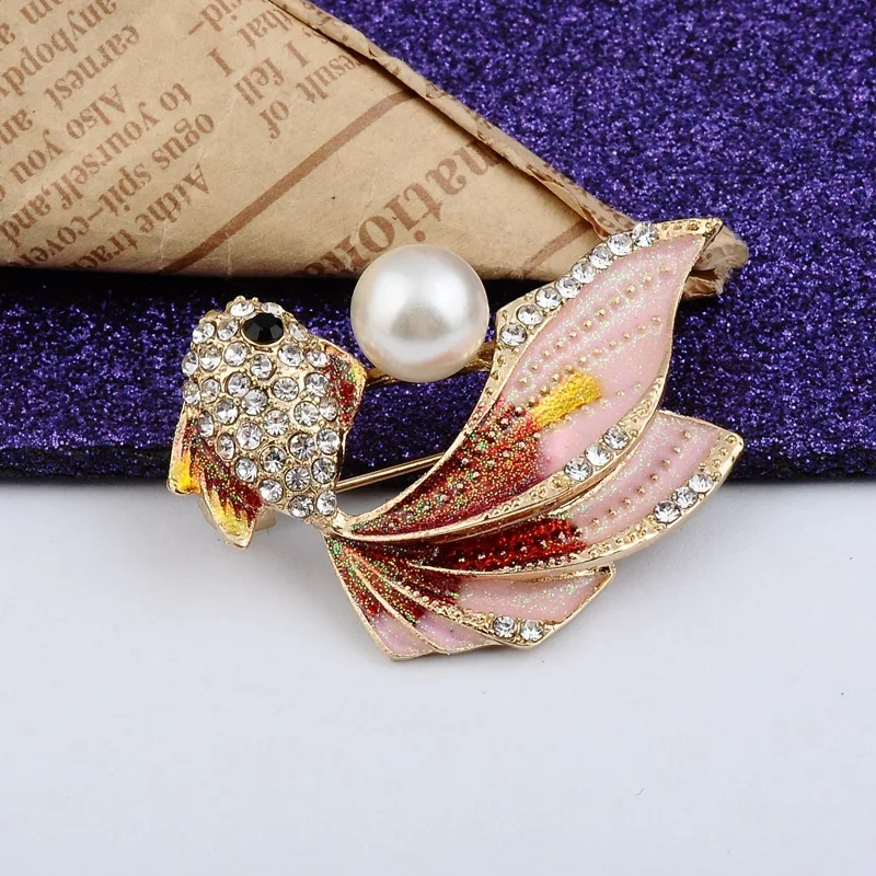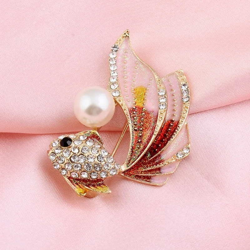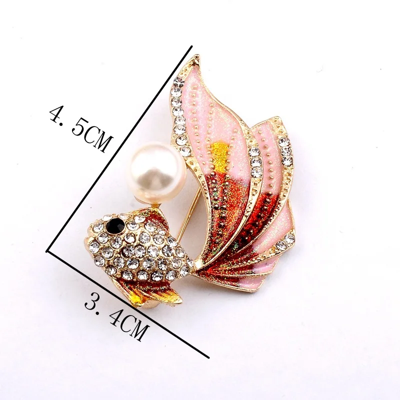 Broche bonito do peixe dourado da cor, forma, strass, pérola, peixe, Pin animal, broches, acessórios
