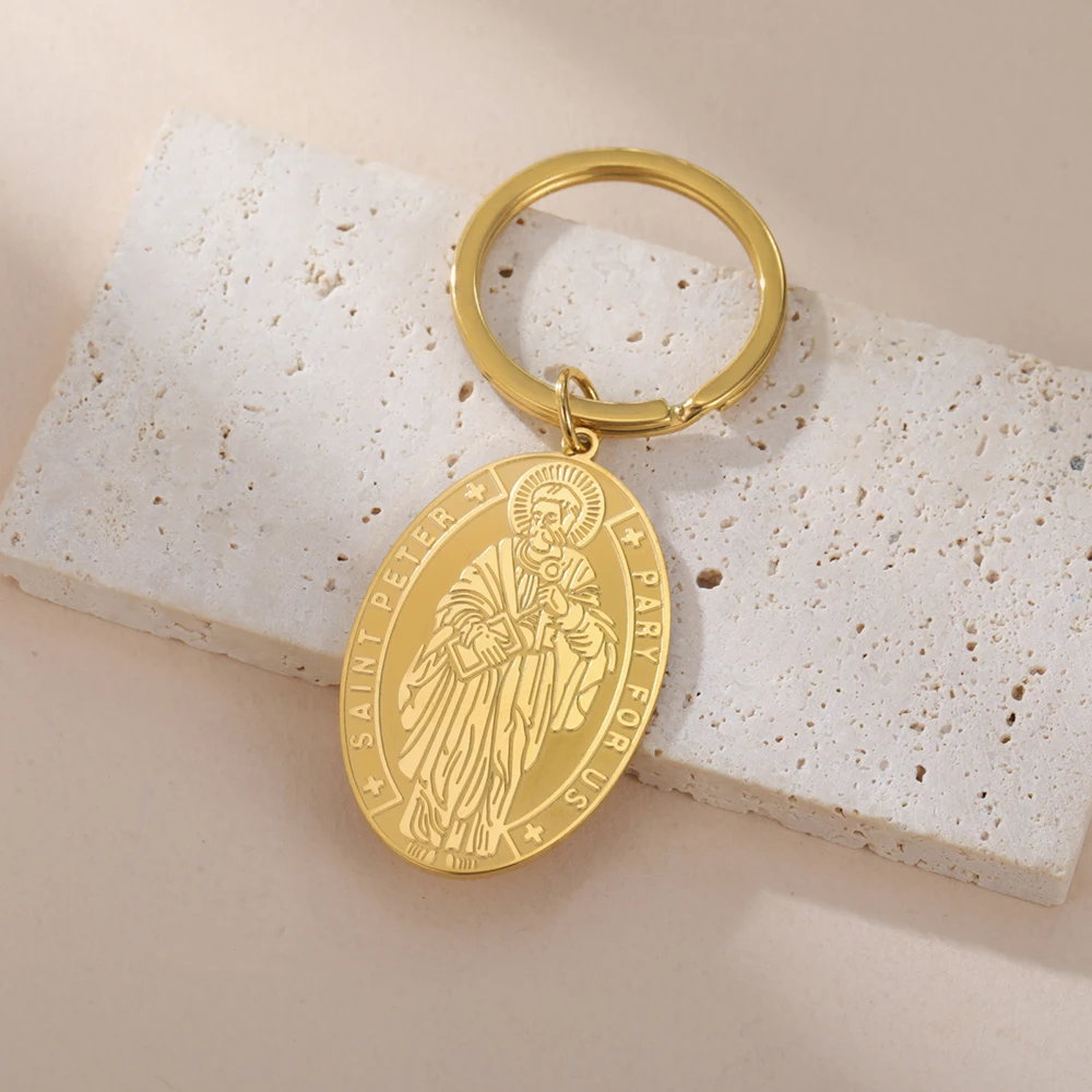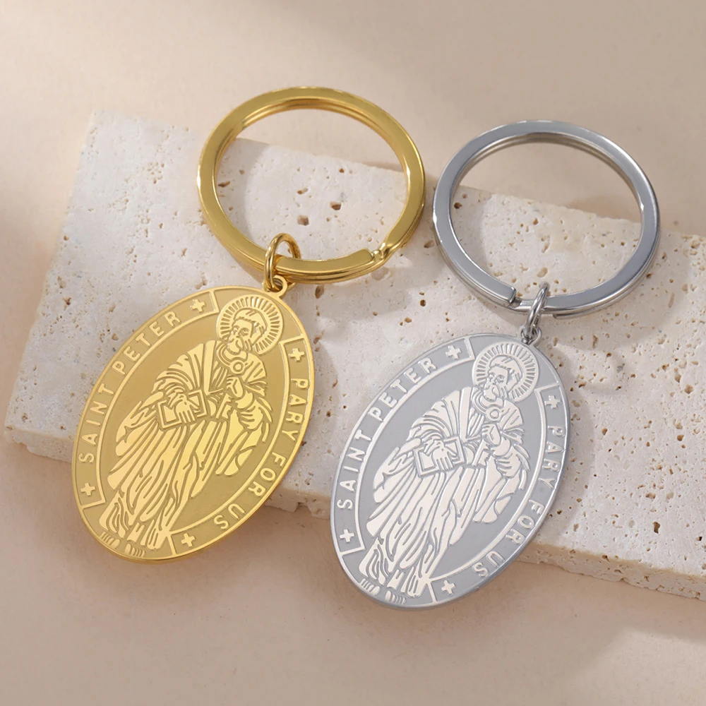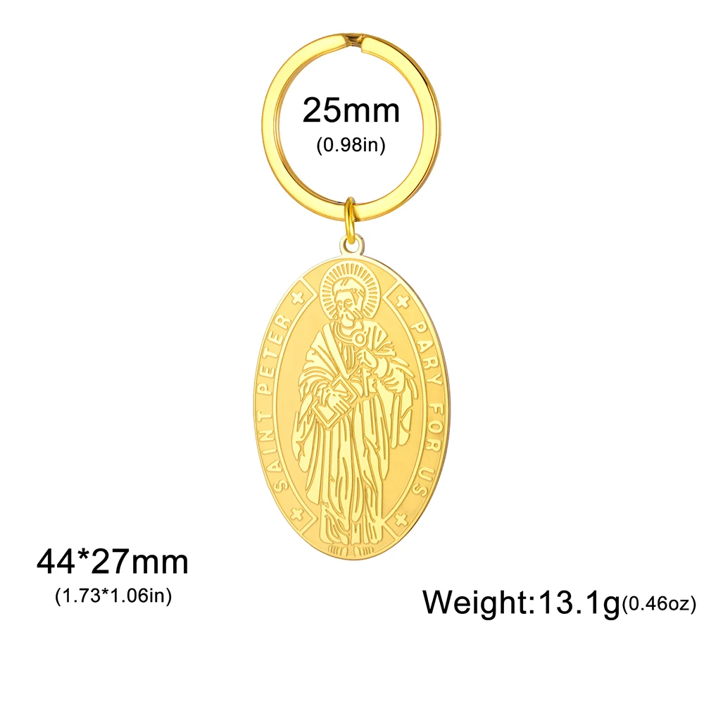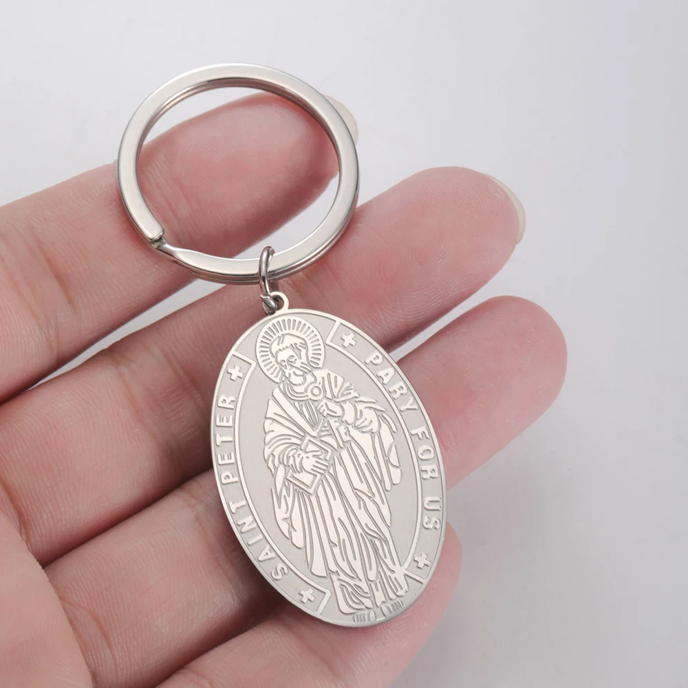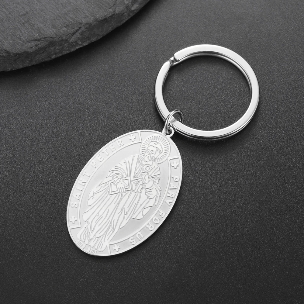 Chaveiro com medalha Dawapara Saint Peter The Apóstolo Saint of Popes e Roma Pingente religioso Chaveiro de aço inoxidável