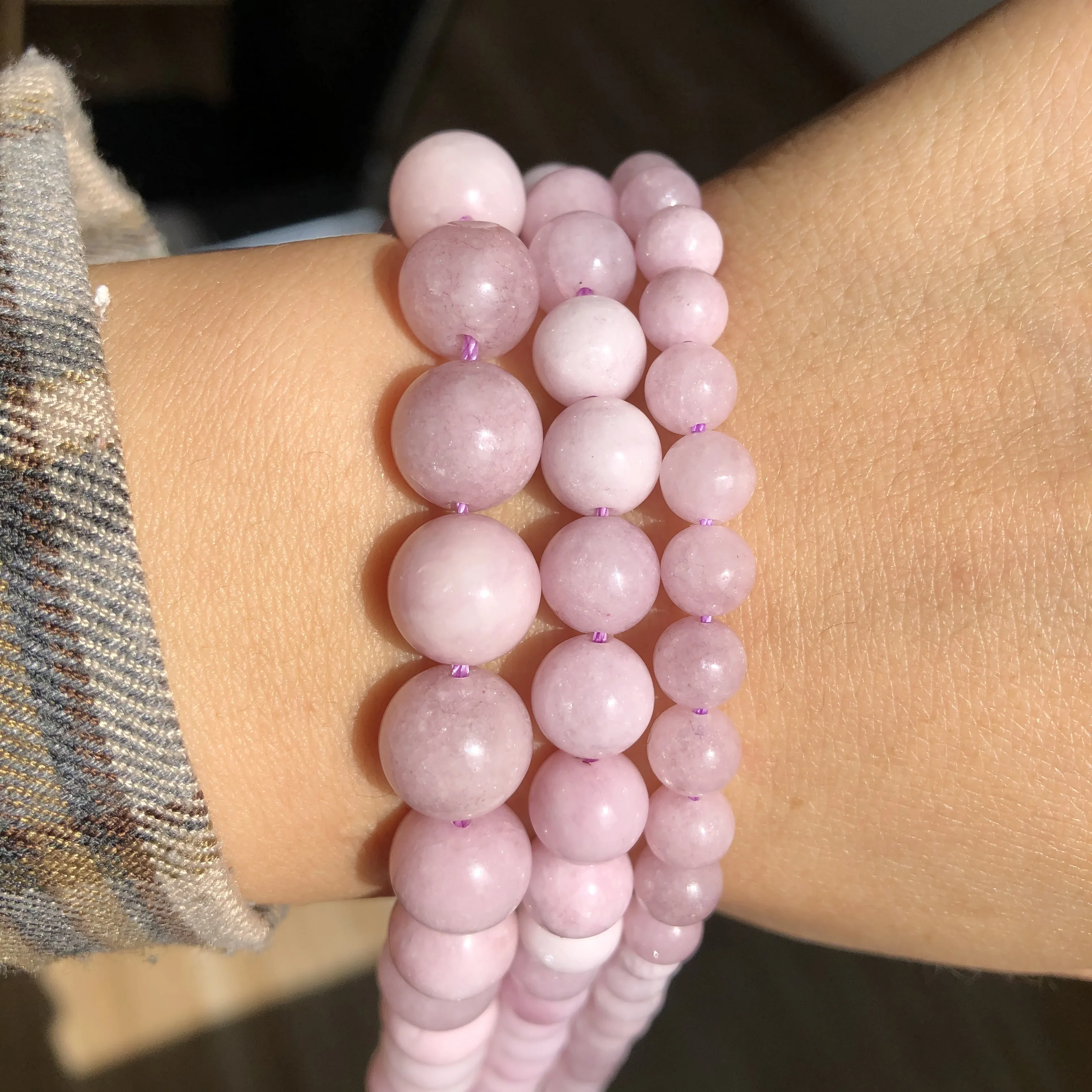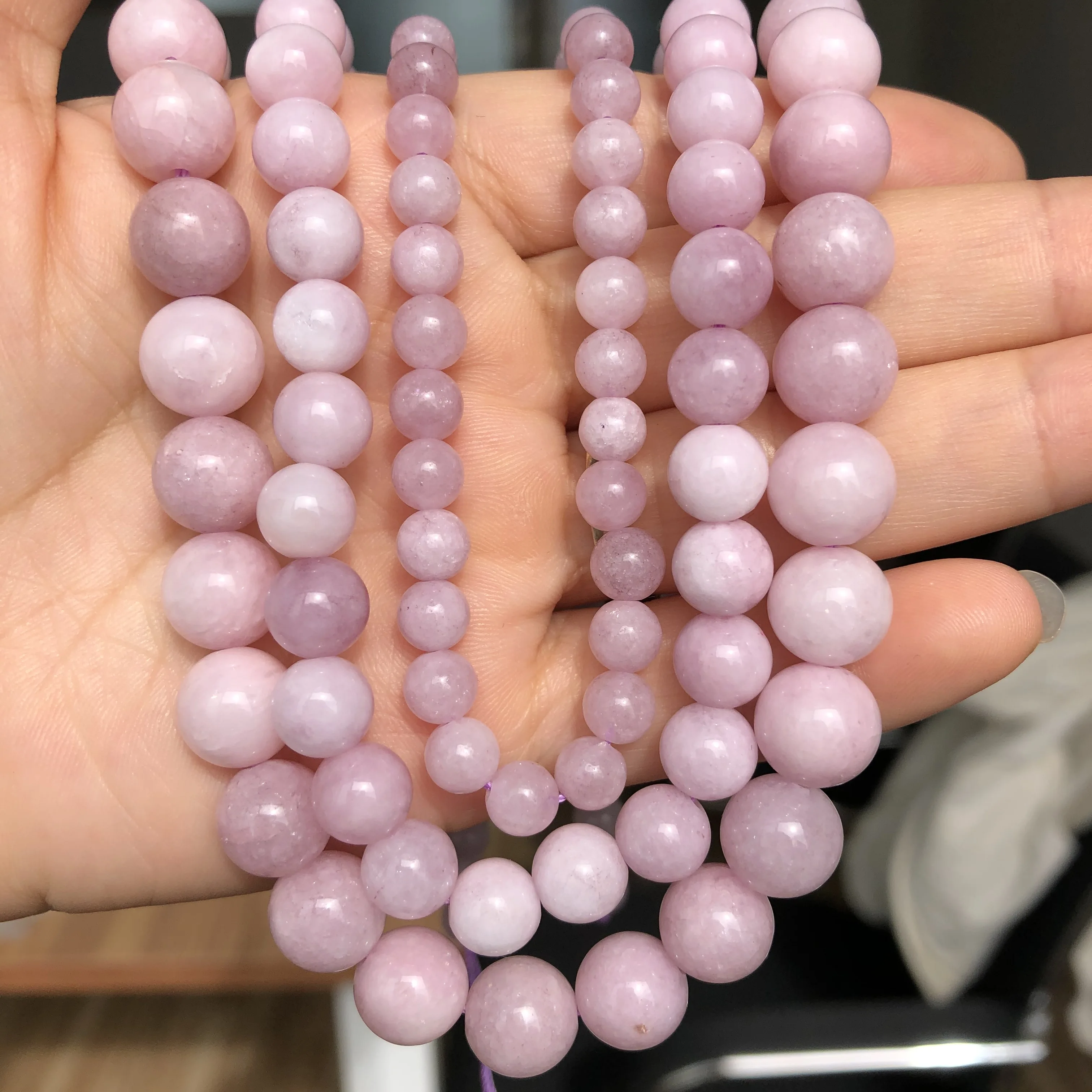 Contas kunzite roxo de pedra natural, contas redondas espaçadoras soltas para fazer joias, bracelete elegante e faça você mesmo