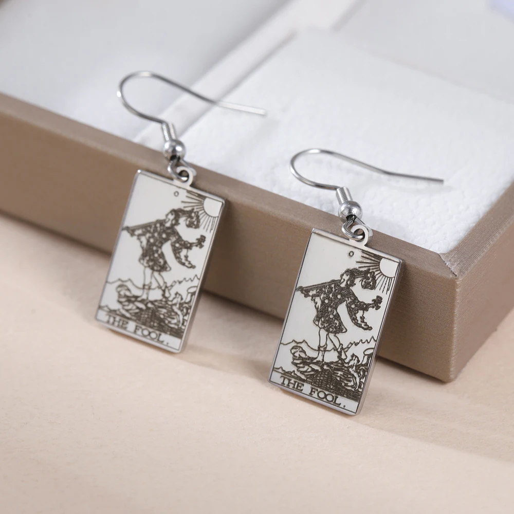 Dawapara clássico tarô cartões brincos de aço inoxidável para mulher pingentes brincos de gota 22 grande arcana tarot jóias
