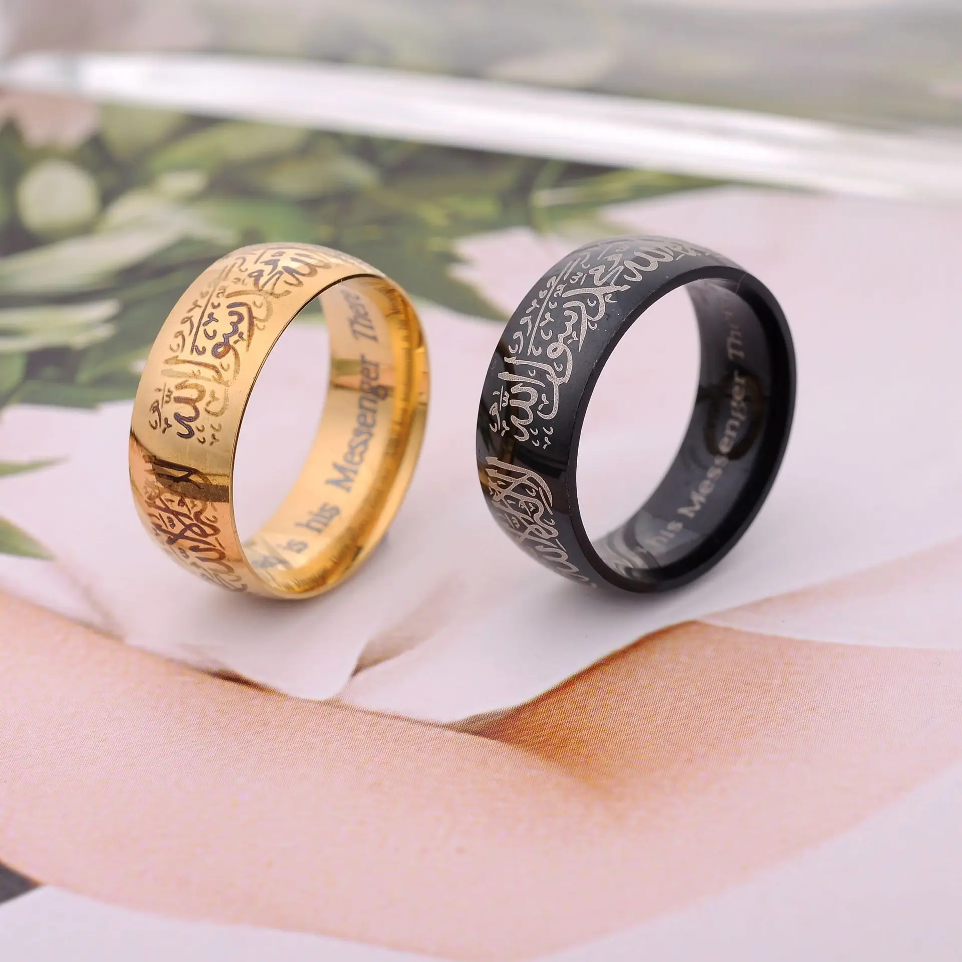 Moda titânio aço alcorão mensageiro anéis muçulmano religioso palavras islâmicas masculino feminino vintage bague moda anel