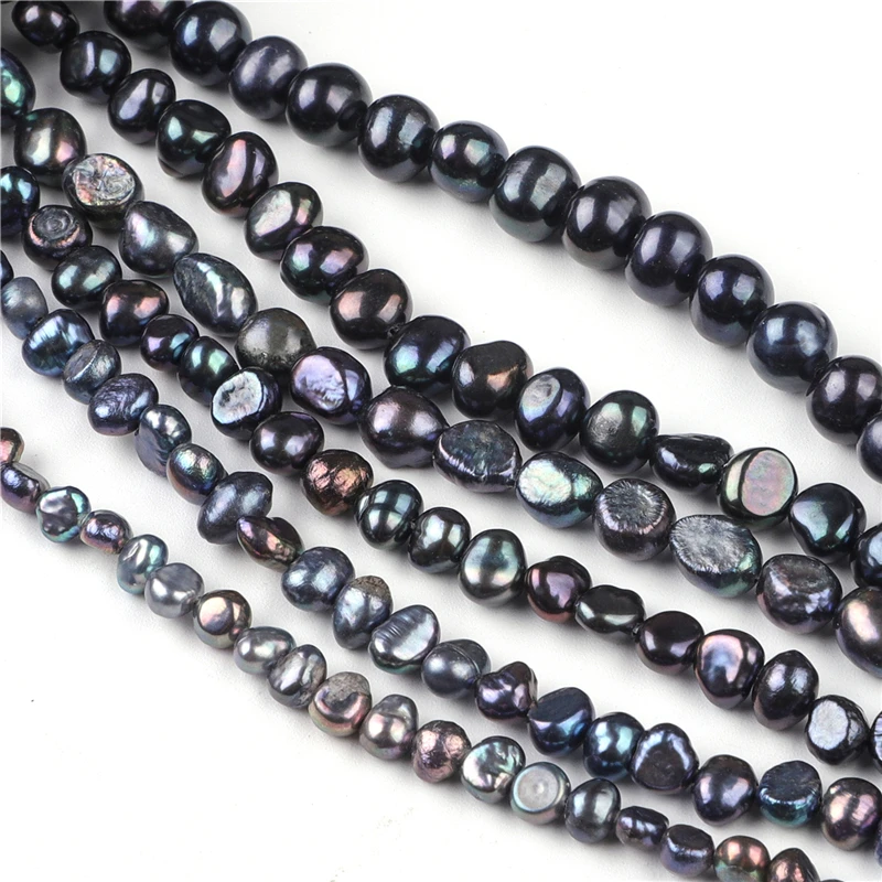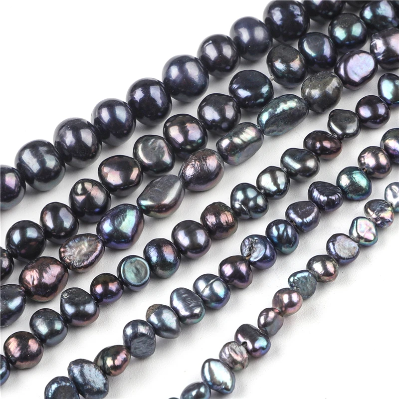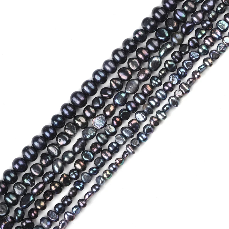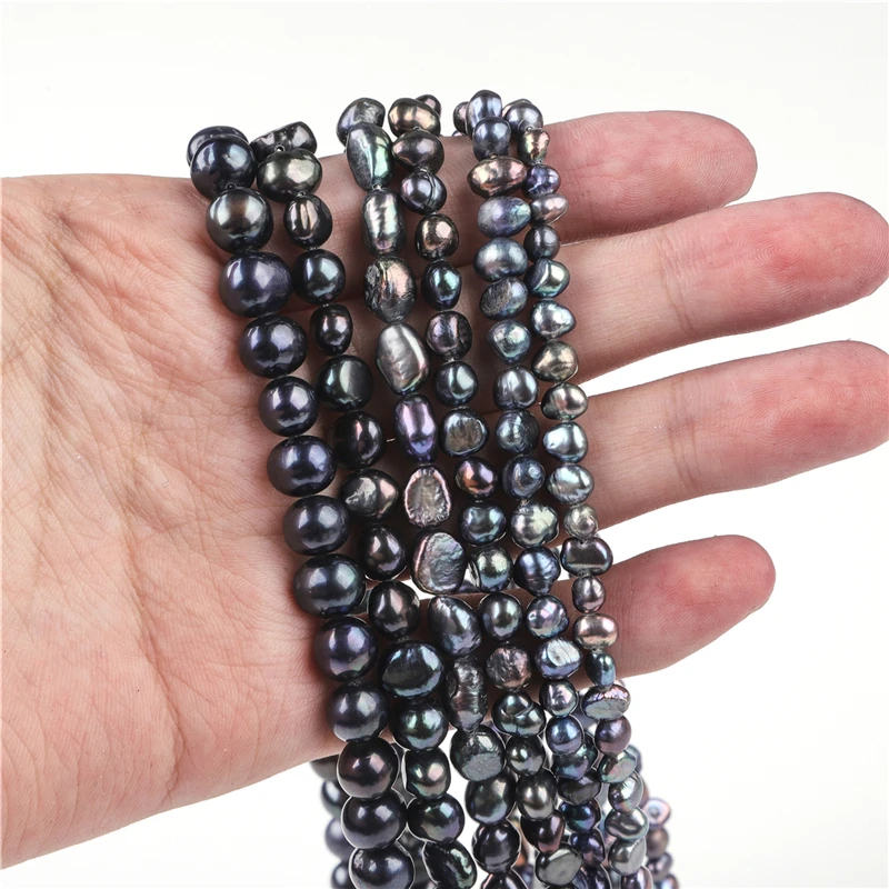 Natural preto de água doce pérola frisado arroz alta qualidade redondo perfurador contas para fazer jóias diy pulseira colar acessórios