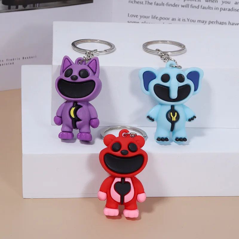 Pequeno sorridente animal pingente chaveiro, Bobbi tempo do jogo, figura de plástico macio, bonito, novo