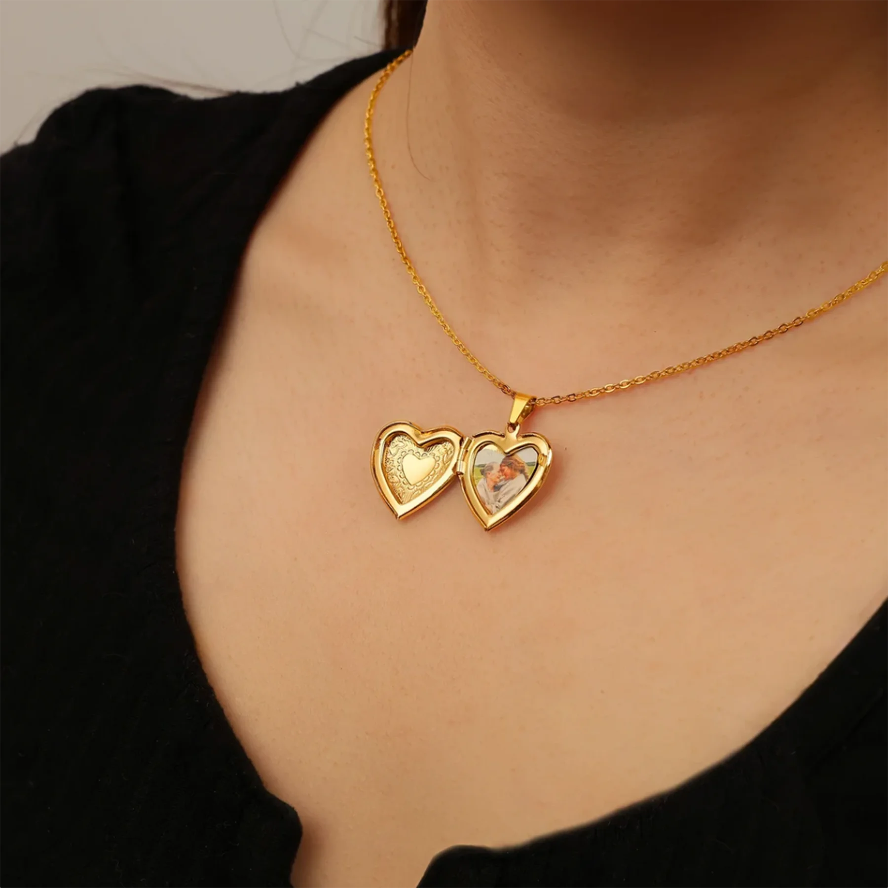Formato coração romântico que abre, unisex para mulheres e homens.