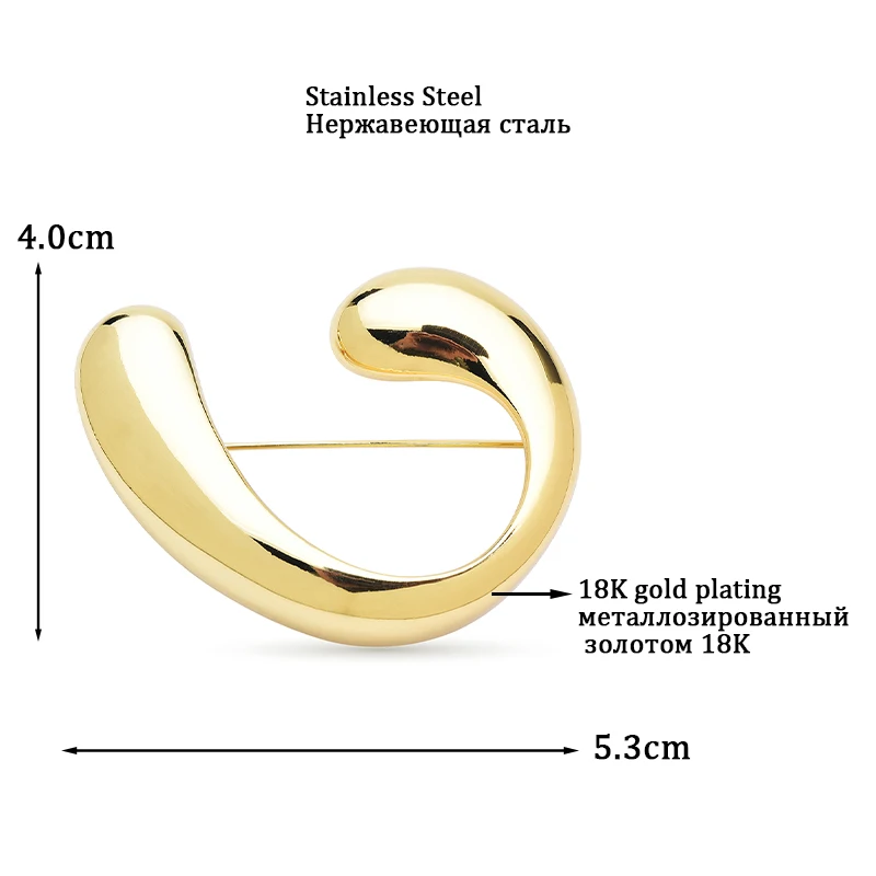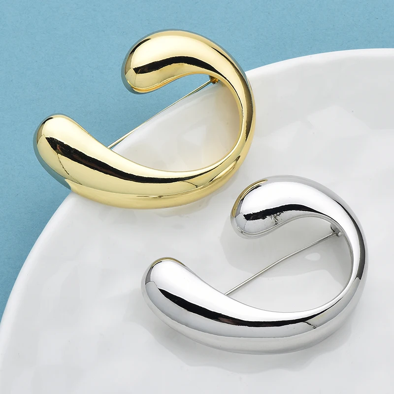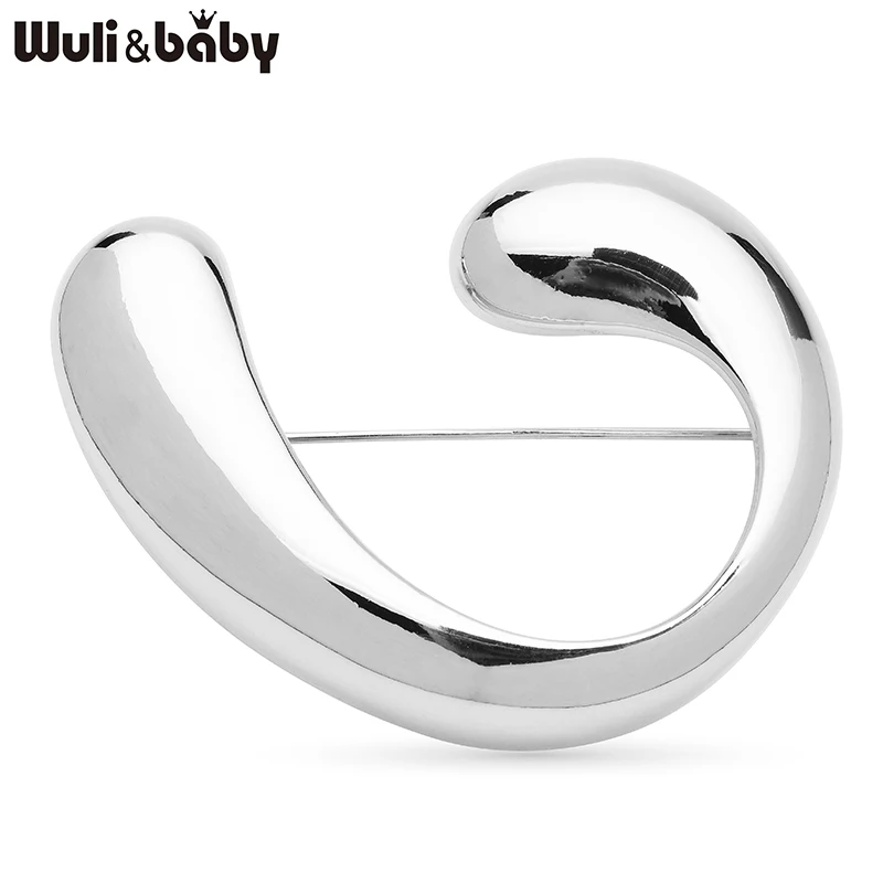 Wuli&baby broches curvos de aço inoxidável para mulheres, unissex, 2 cores, charmosos, geométricos, para escritório, roupas casuais, presentes
