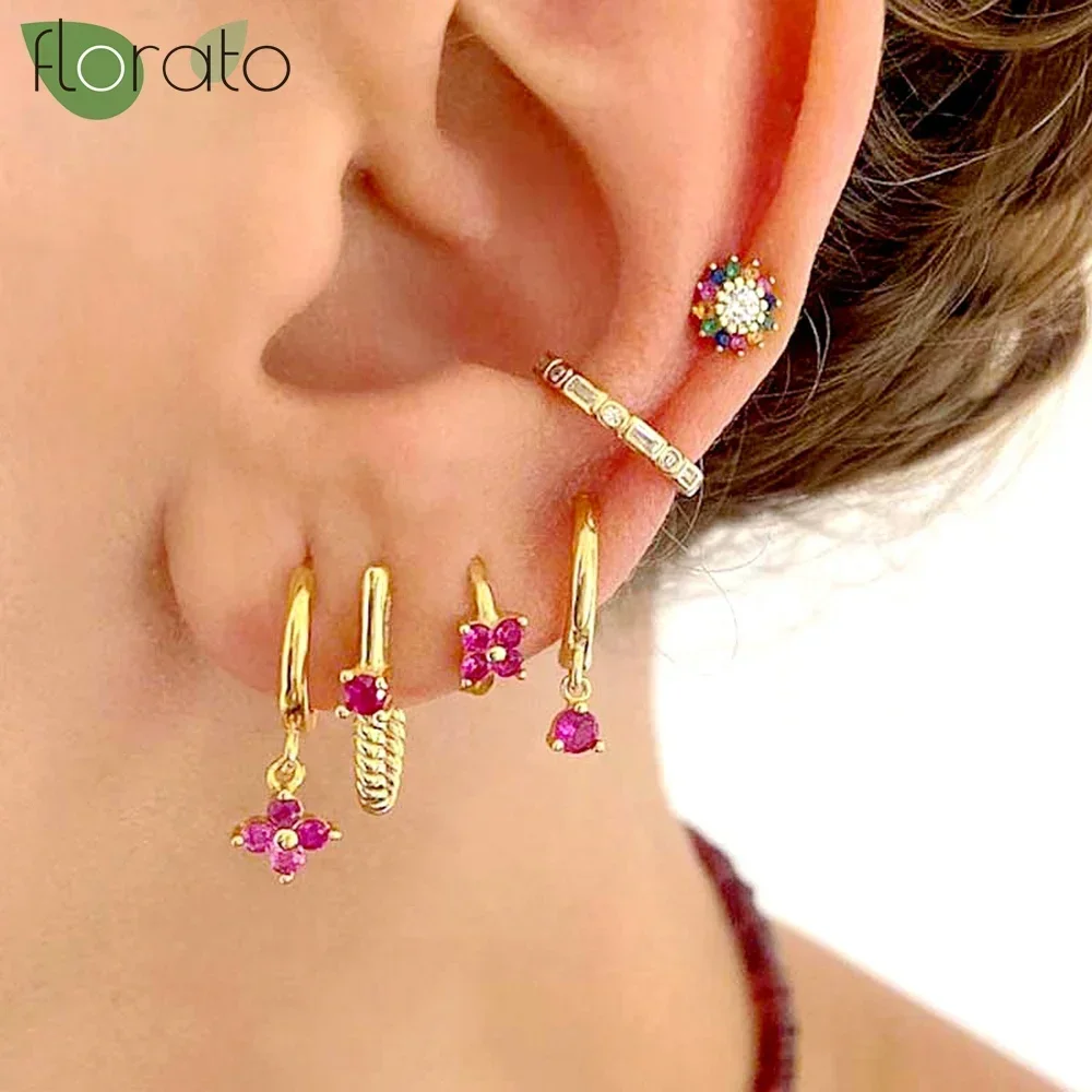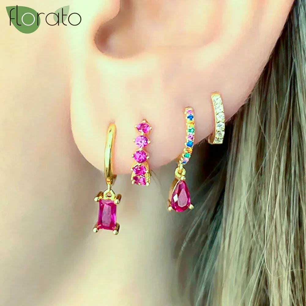 925 prata esterlina agulha rosa vermelho cristal coração pingente brincos moda 18k ouro hoop brincos para mulheres jóias de luxo presente