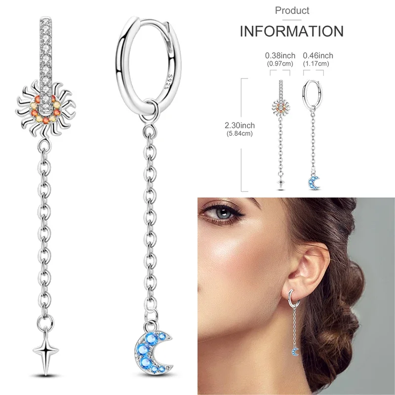 925 prata esterlina amor pena lua estrela coração brincos caber encantos originais argola para mulheres meninas brinco jóias presentes