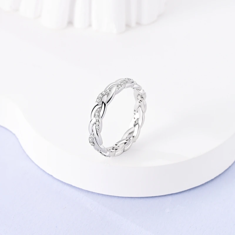 Anel de prata esterlina 925 original, anéis trançados brilhantes para mulheres, meninas, joias, presentes de aniversário