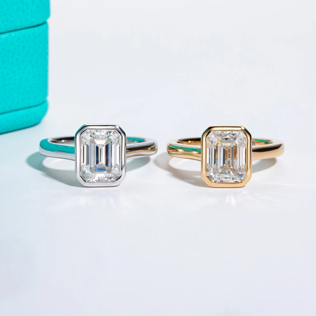 AnuJewel-Esmeralda Corte Moissanite Anel De Noivado Para Mulheres, 925 Anéis De Prata Esterlina, Cor D, Cor Amarela, Jóias Por Atacado, 3ct