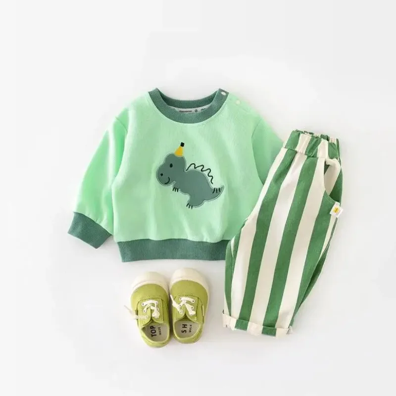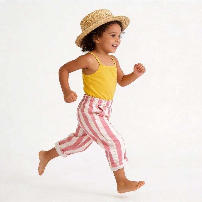 Calça infantil casual listrada solta, bolsos de bebê, calça de algodão ao ar livre, fantasia de criança, menino, menina, criança, nova moda, outono