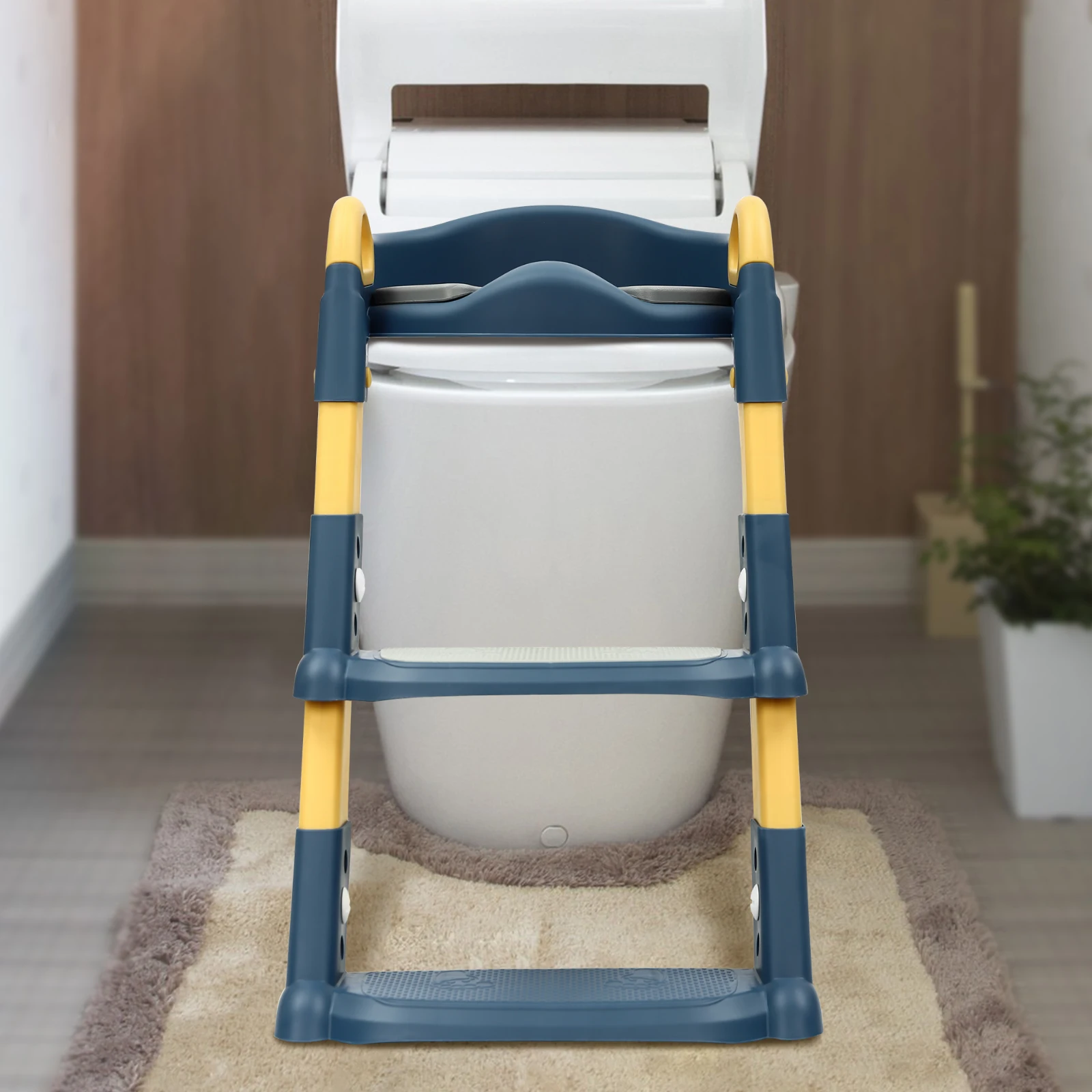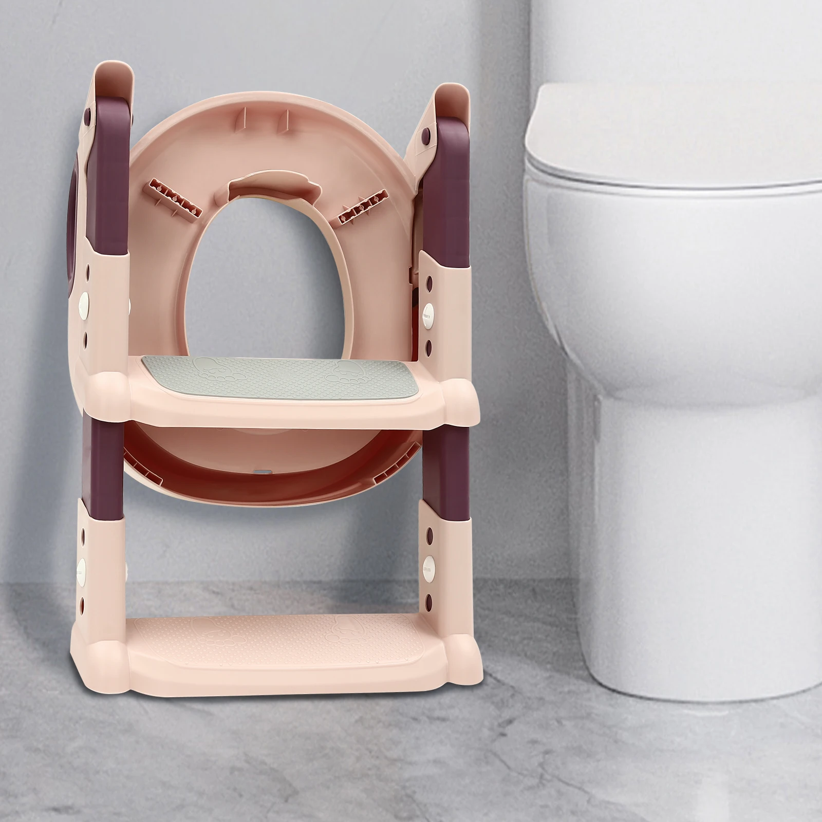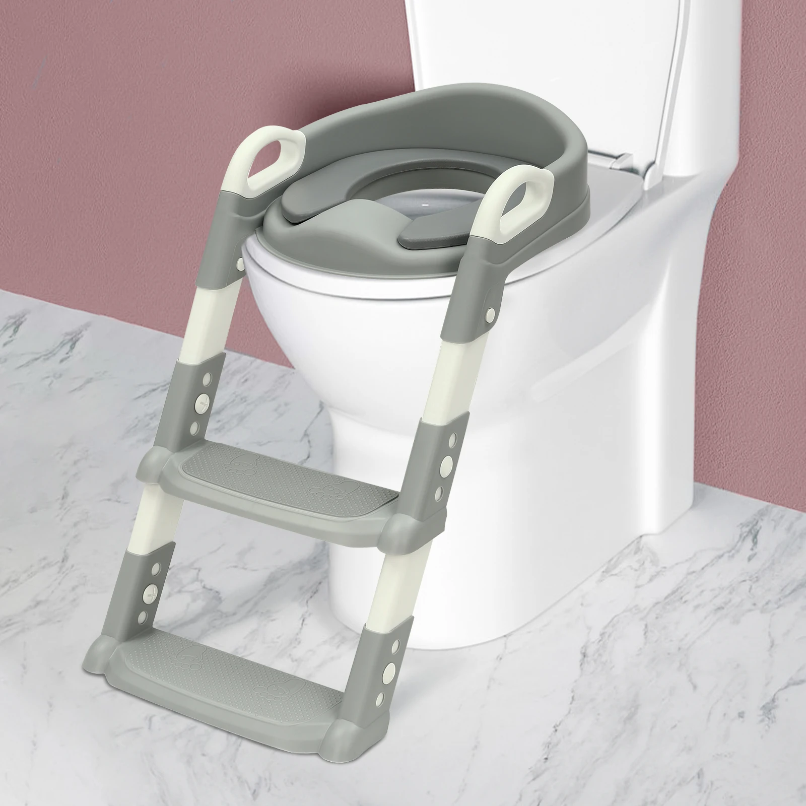 Assento sanitário dobrável para bebês com escadas para crianças de 2 a 7 anos, assento de treinamento potty com altura ajustável com pedais e alças antiderrapantes