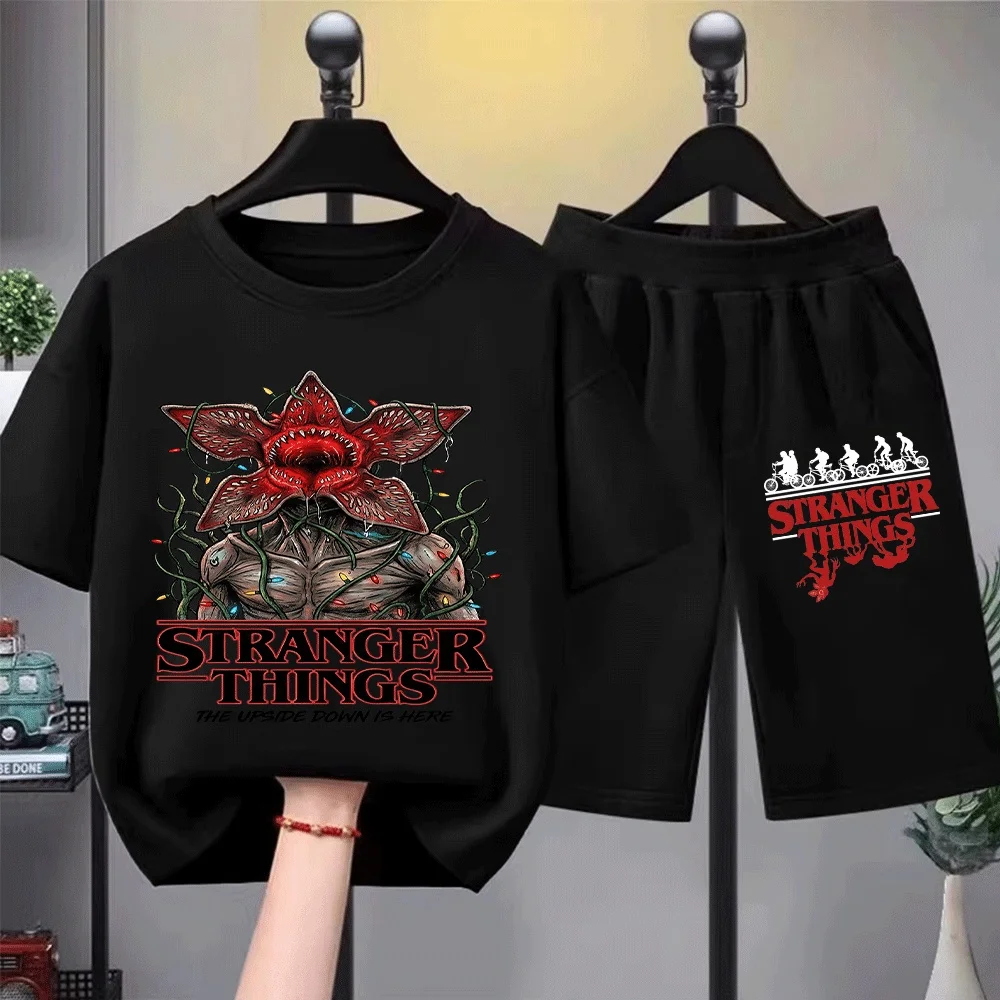 Conjunto de camisetas infantis Stranger Things com design Demogorgon, estampa divertida de luzes de Natal, perfeito para jovens fãs