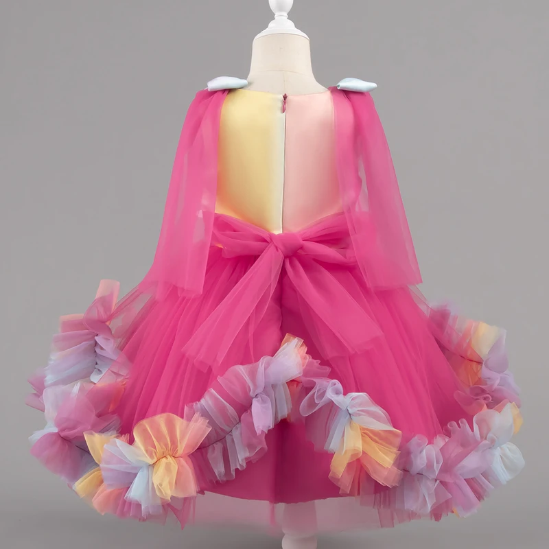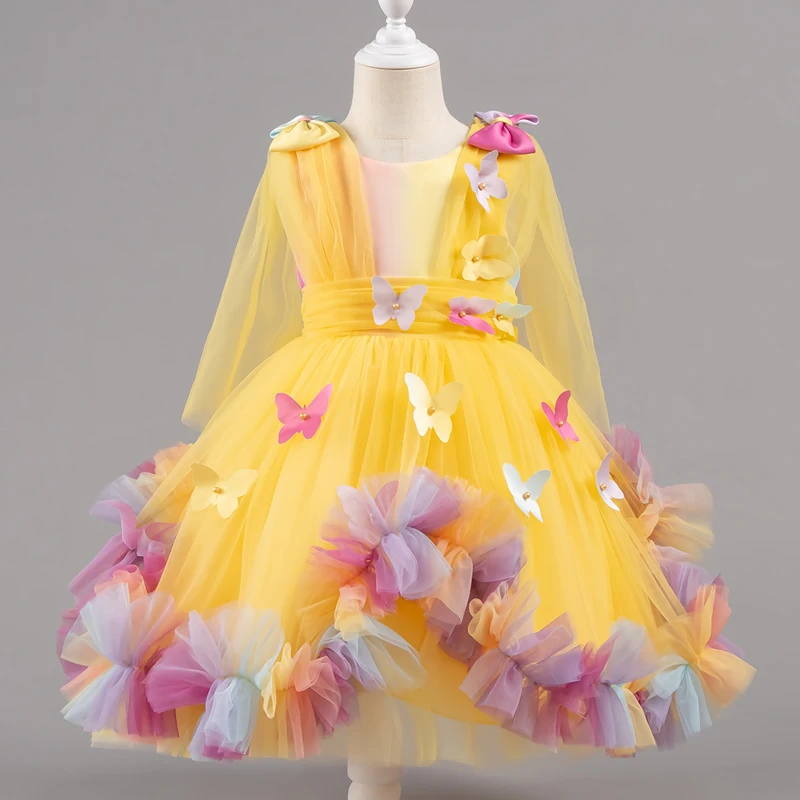 Vestido de bebê 0-5 anos, festa de aniversário, vestidos de casamento para crianças pequenas, sem mangas, malha borboleta, fofo, menina, vestido de princesa