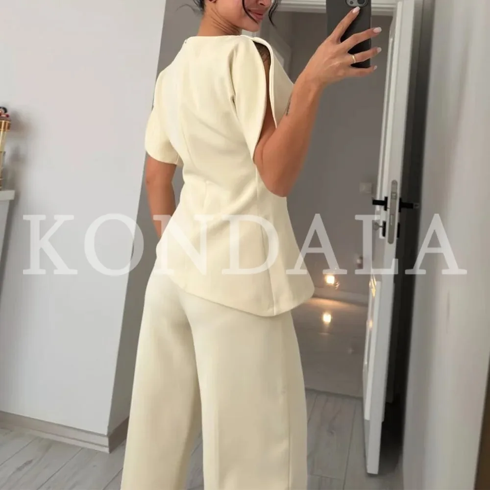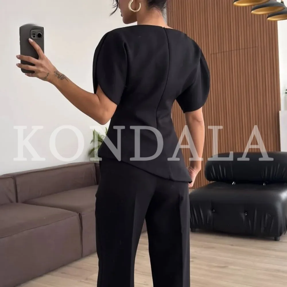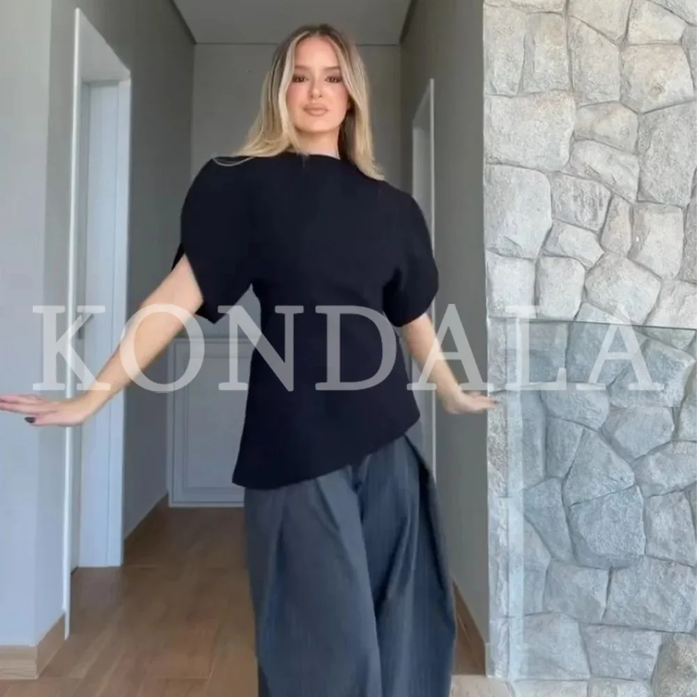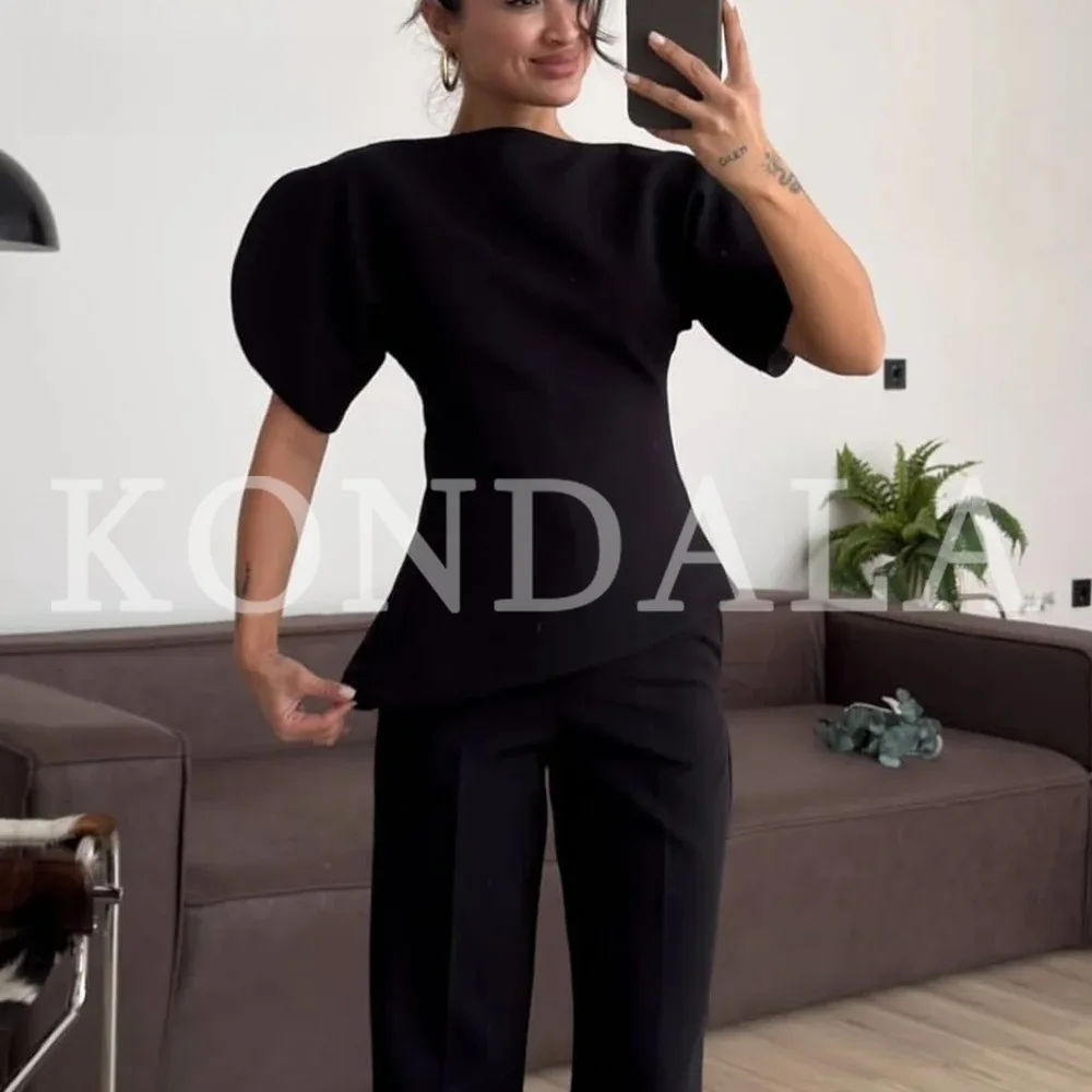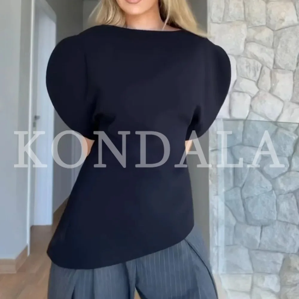 KONDALA 2026 Primavera Verão Blusas Elegantes Femininas com Mangas Bufantes Moda Preto e Branco Sólido com Zíper para Praia e Festa