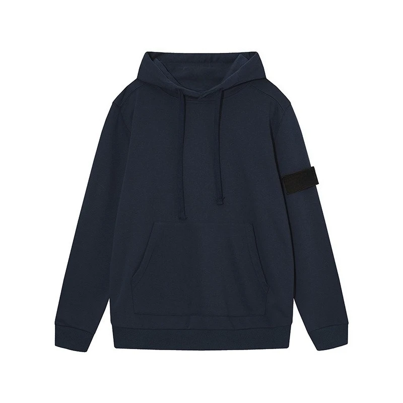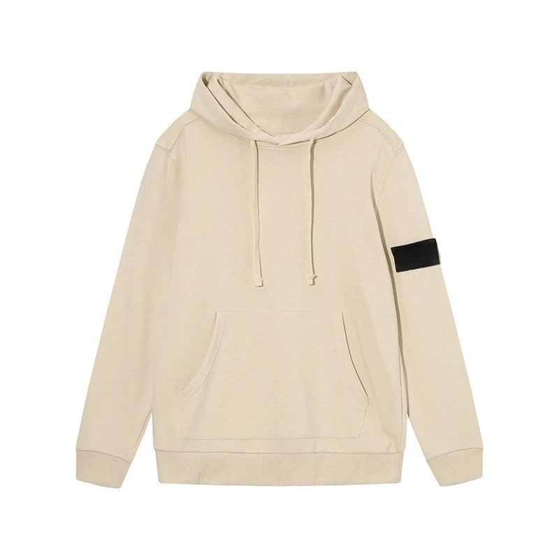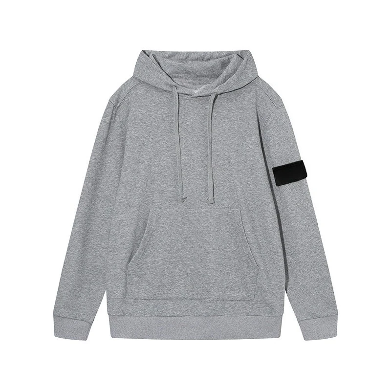 Moletom com capuz unissex de manga comprida, estilo europeu e americano, com emblema de braçadeira em cor sólida, de corte solto.