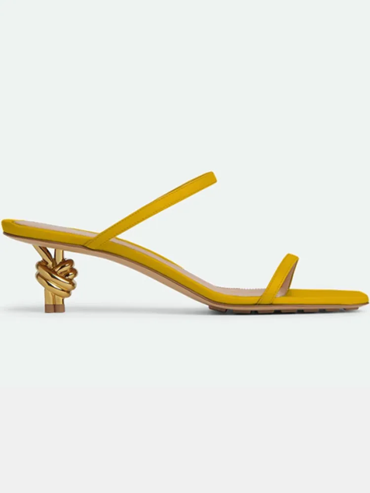 2025 verão feminino novo fino ajuste chinelos de salto alto moda andando festa cabeça quadrada sandálias de salto alto irregular