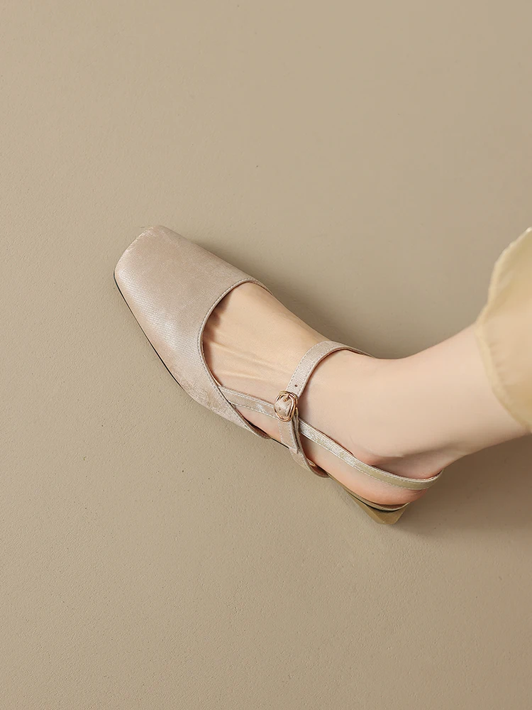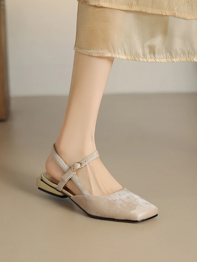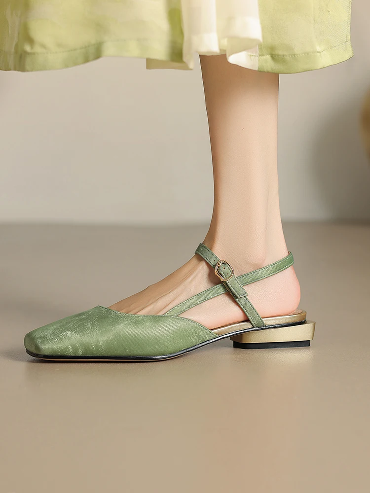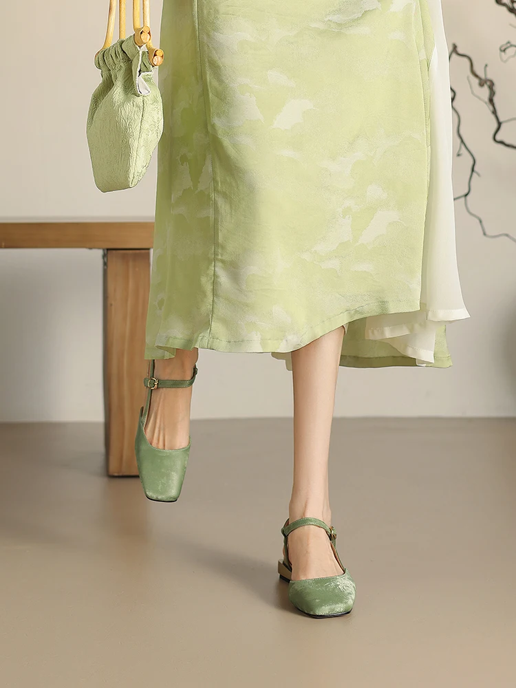 Sandálias de microfibra fechadas para mulheres, estilo nacional, sapatos de pé pequeno, damasco verde, alça em T