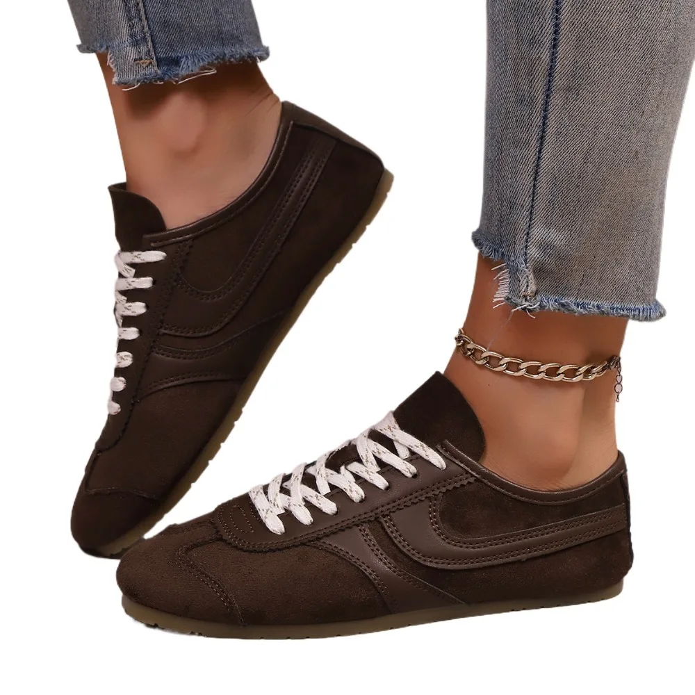 Sapatos de treinamento alemão feminino 2025 novo couro genuíno tênis feminino plana rendas retro tamanho grande forrest gump sapatos femininos