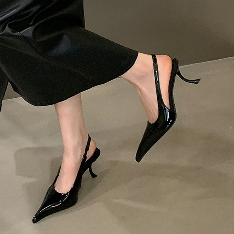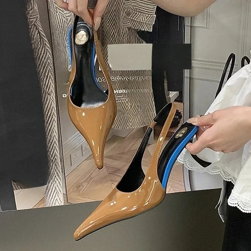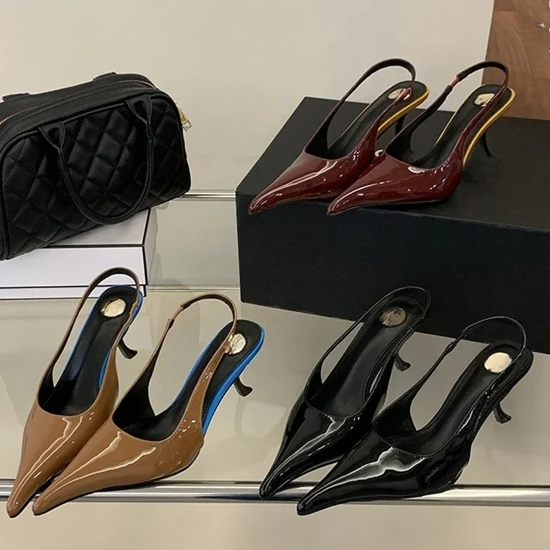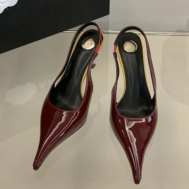 Sapatos femininos Aneikeh retrô, elegantes, de salto alto, com bico fino, em couro envernizado, para festas e casamentos.