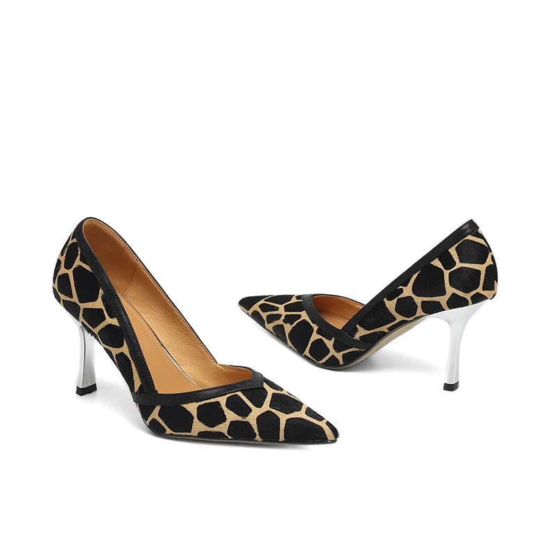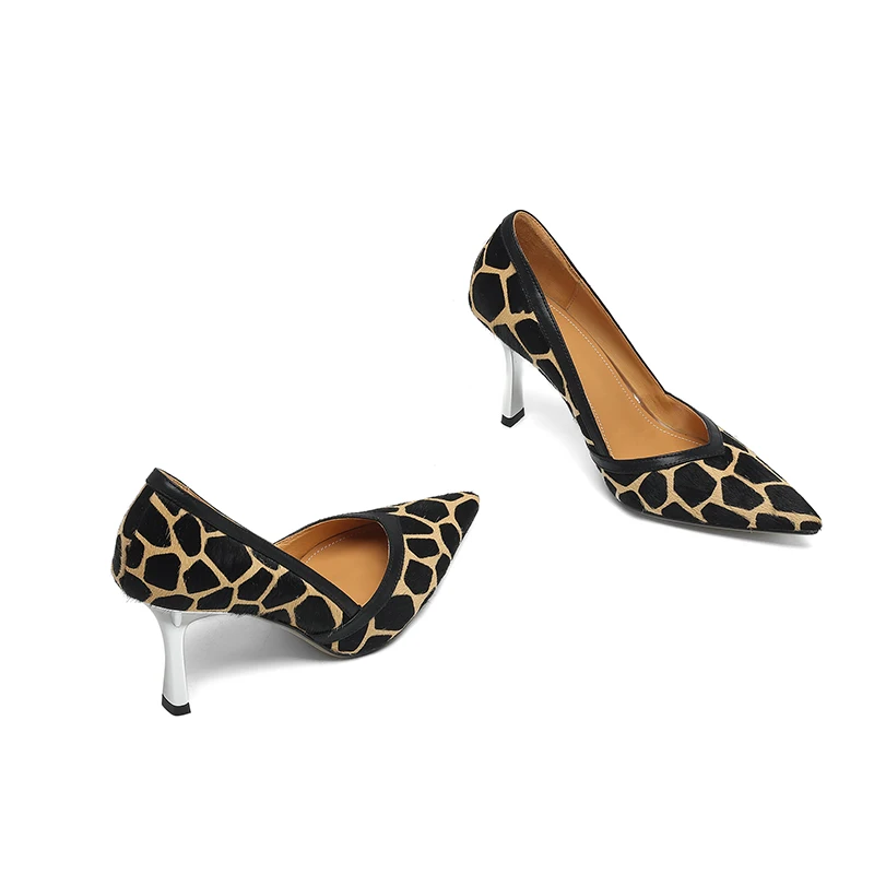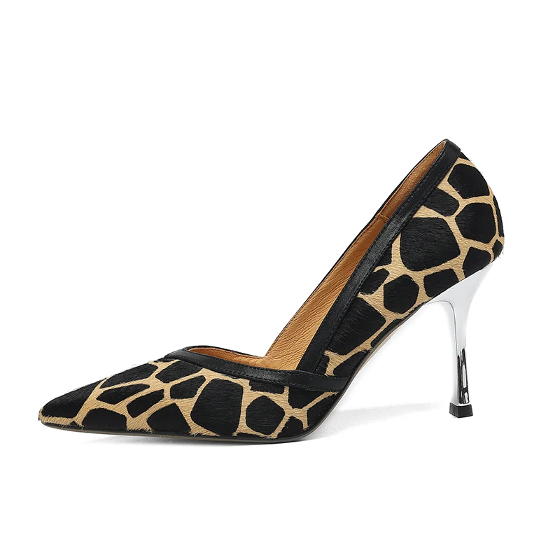 Smallhut nova tendência da moda 2026 impresso crina salto alto sexy amarelo preto apontou toe saltos grossos bombas senhoras sapatos de festa