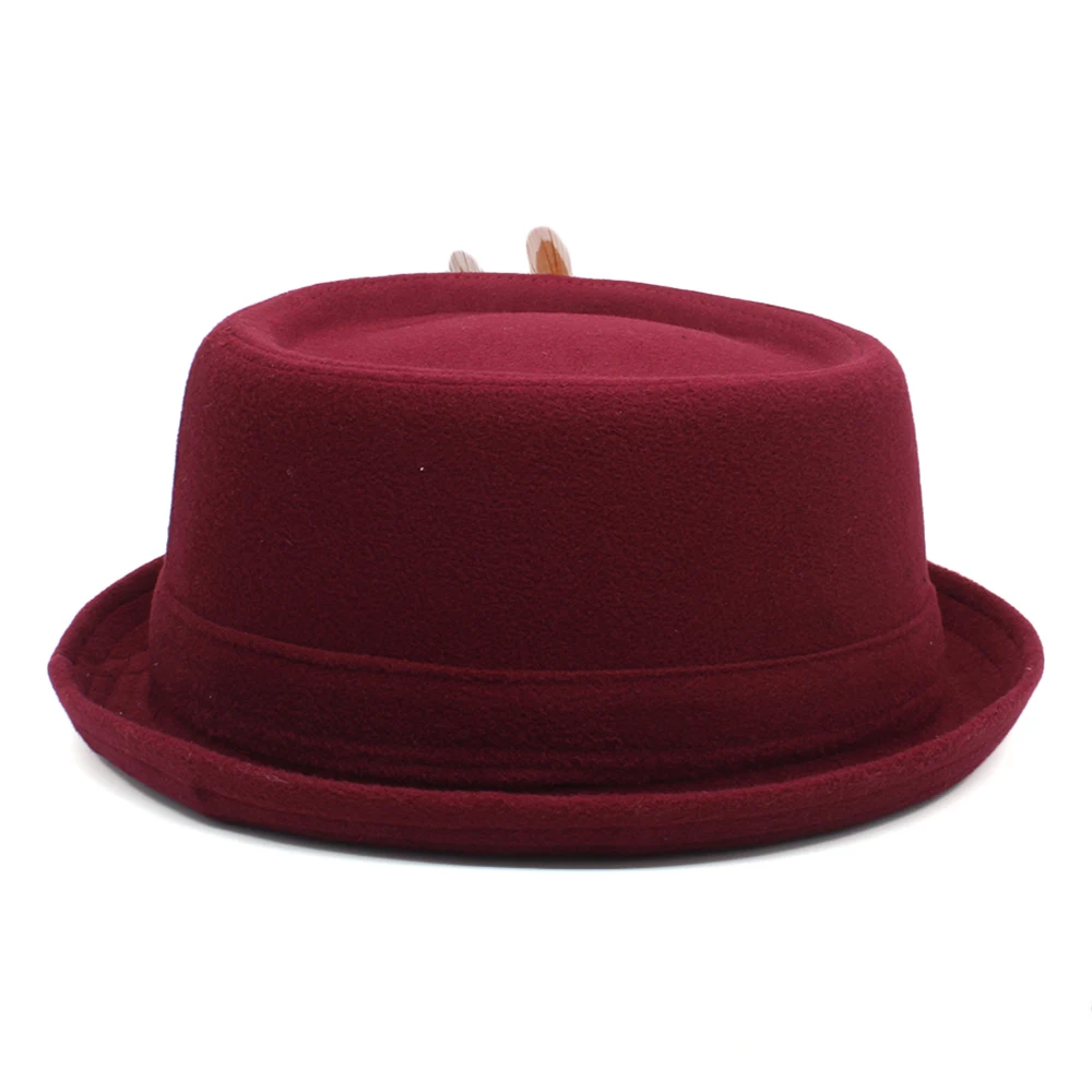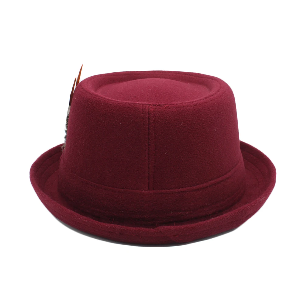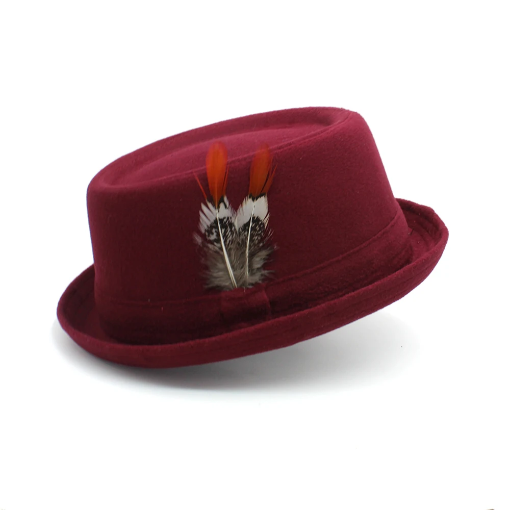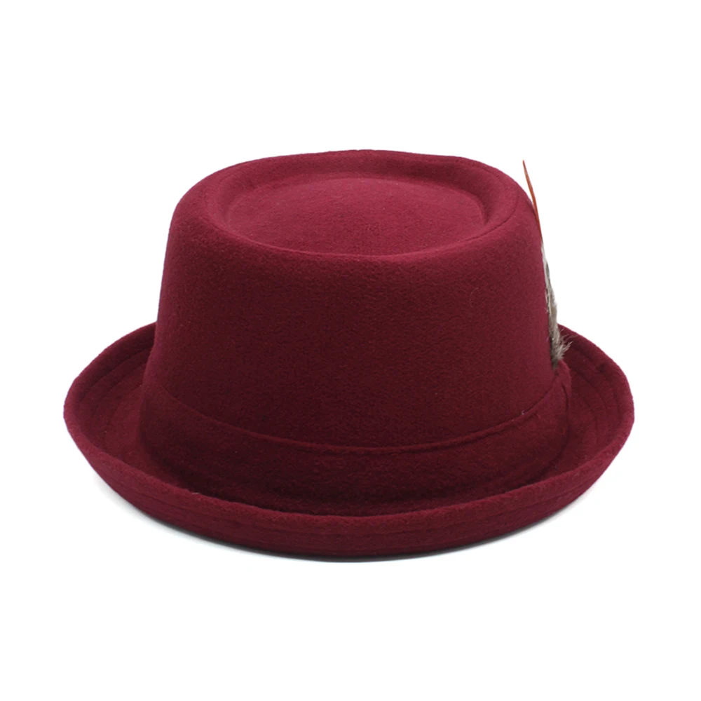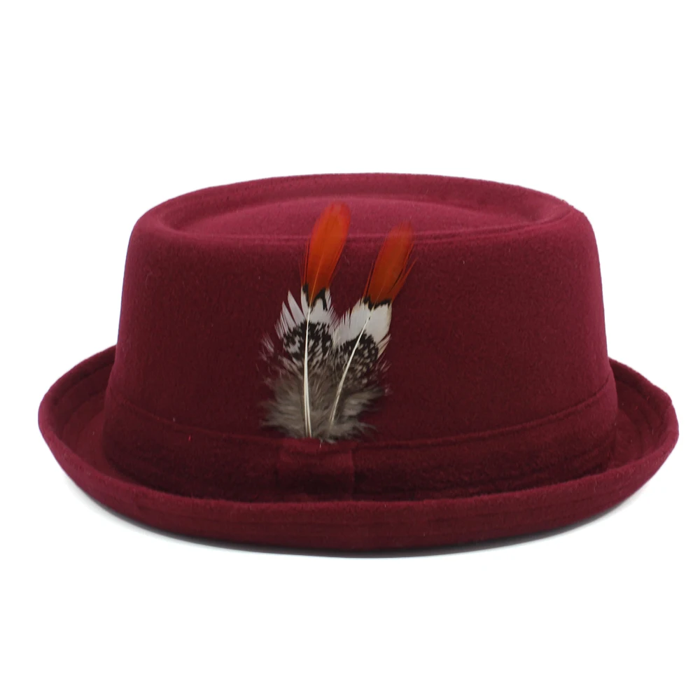 Men Women Wool Pork Pie Hat Retro Feather Band Fedora Cap Trilby Sunhat Classical Jazz Party Outdoor Travel Street Style