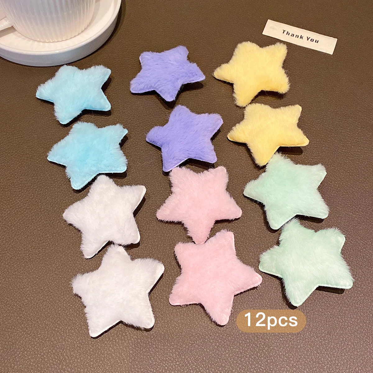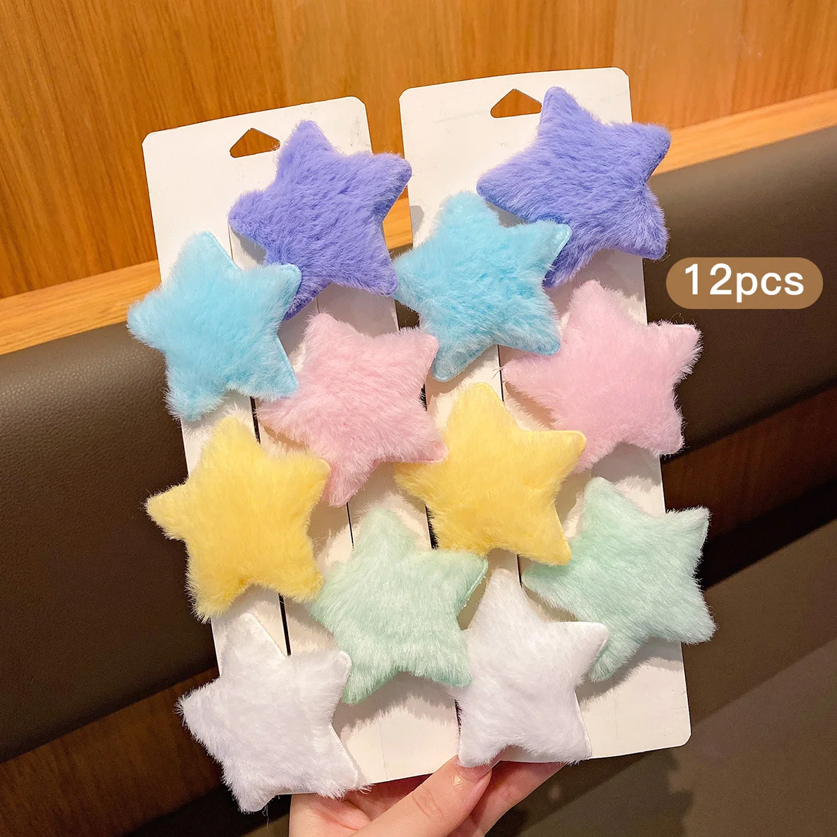 12 random plush star hair clips in different colors, sweet and stylish colored hair accessories suitable for daily use