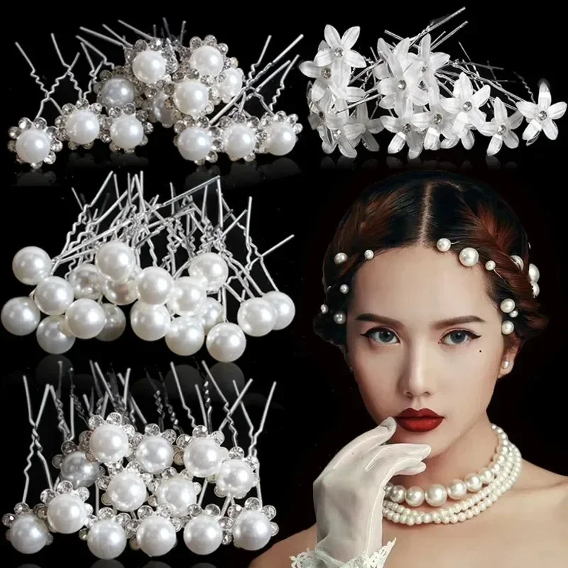 20Pcs Pearl U-shaped Pin Bridal Wedding Hair Accessories Rhinestone Hair Pins Forks Silver Hair Combs Party Ornaments Hairclips