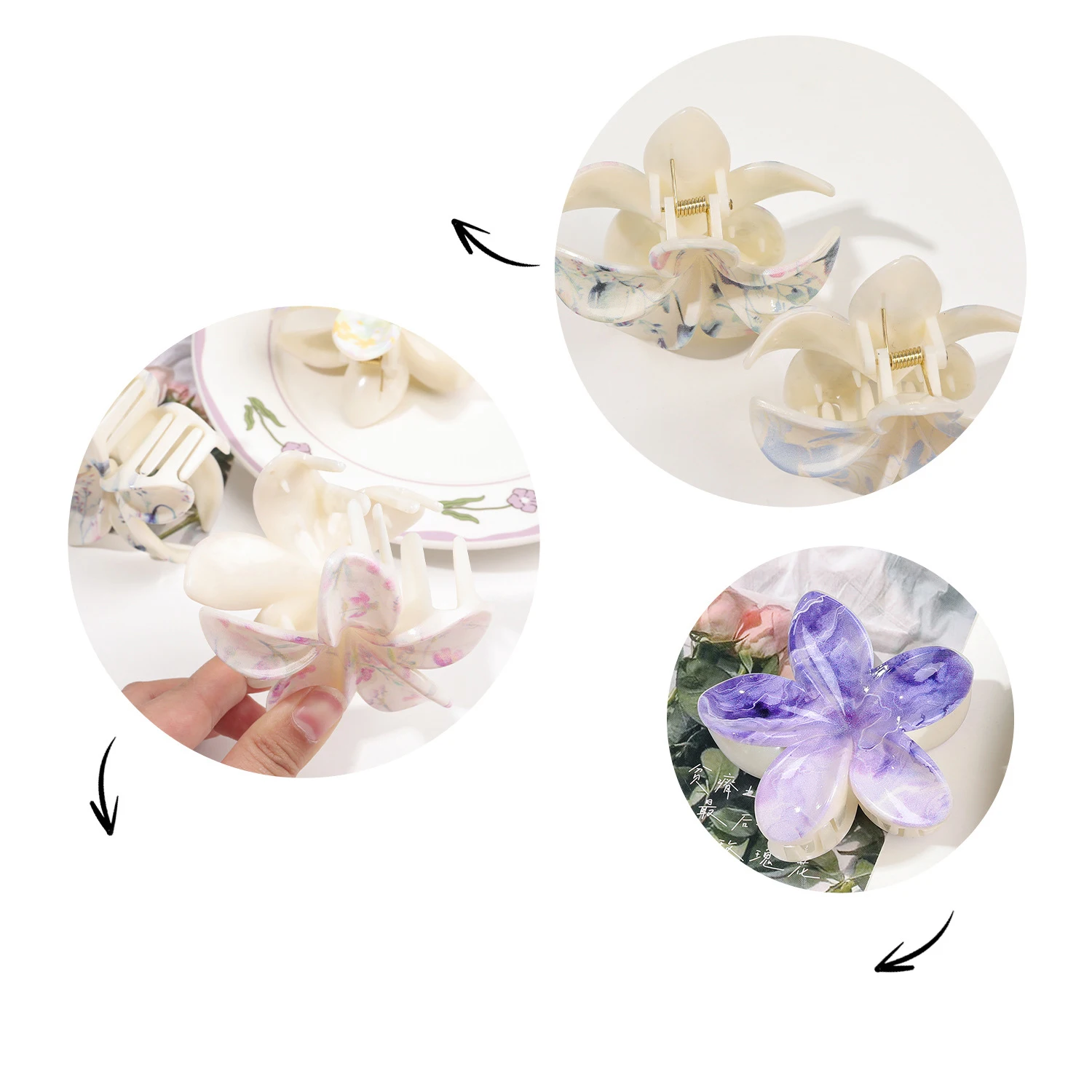 Fashion Women Print Hair Claws Vacation Bohemia Egg Flower Hair Clips Crab Barrettes Girls Large Hairpins Hair Accessories