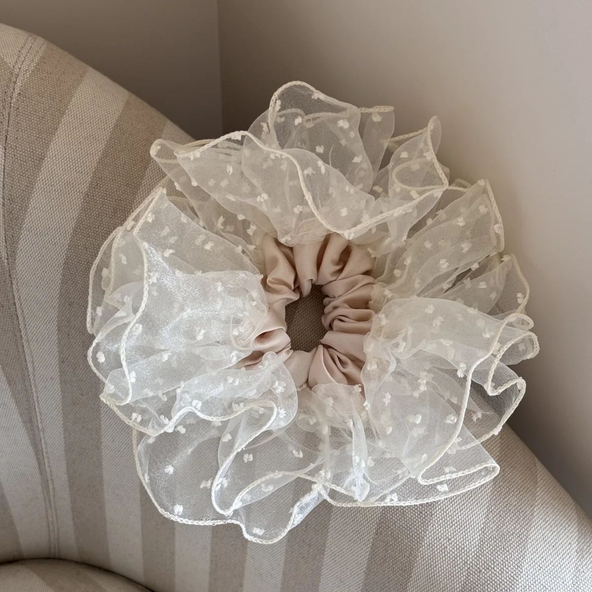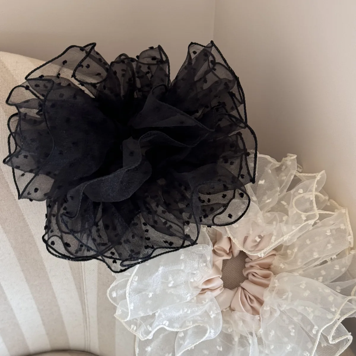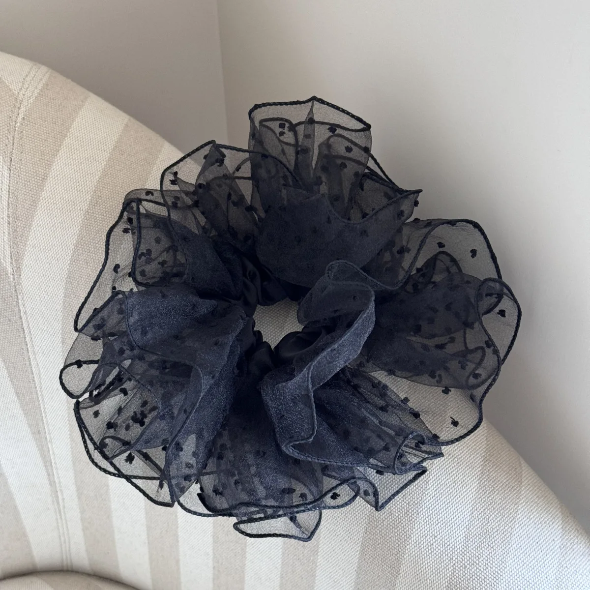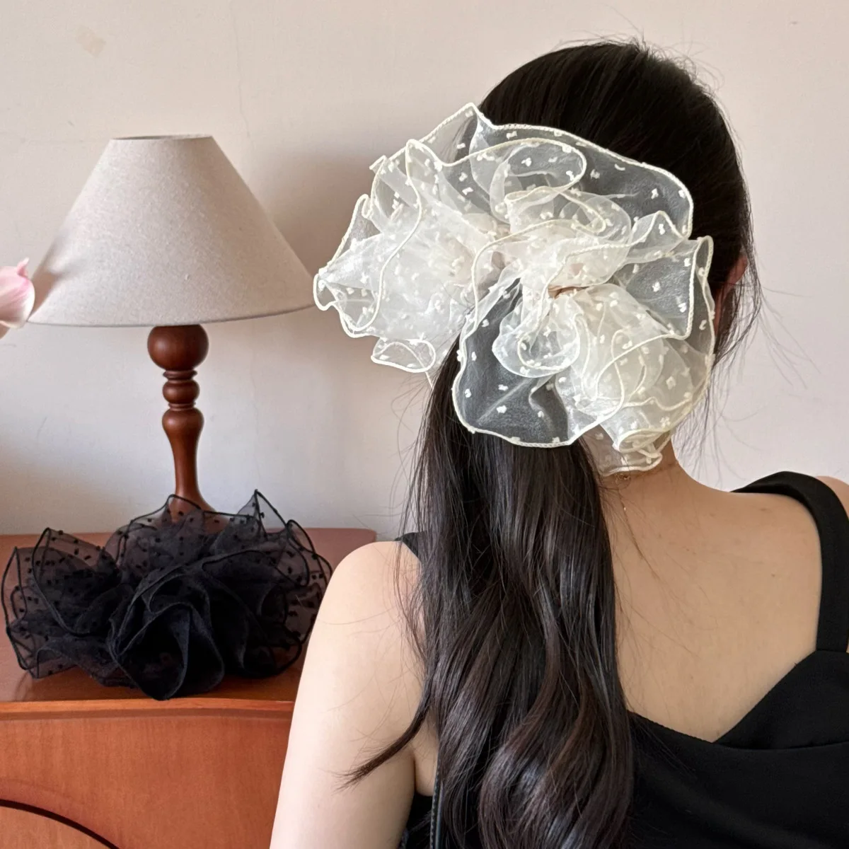 French Hair Rope Exquisite Hollow Flower Shaped Large Intestine Hair Ring For Women Girls Meatball Head Hair Accessories